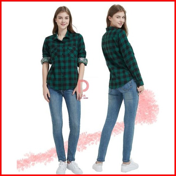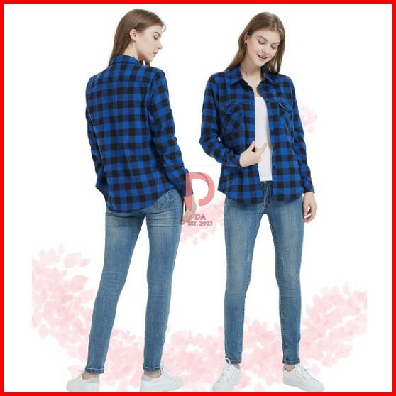 Kemeja Flanel Wanita Lengan Panjang Flannel Wanita Kotak Kotak Atasan Baju Kemeja Wanita Best Seller