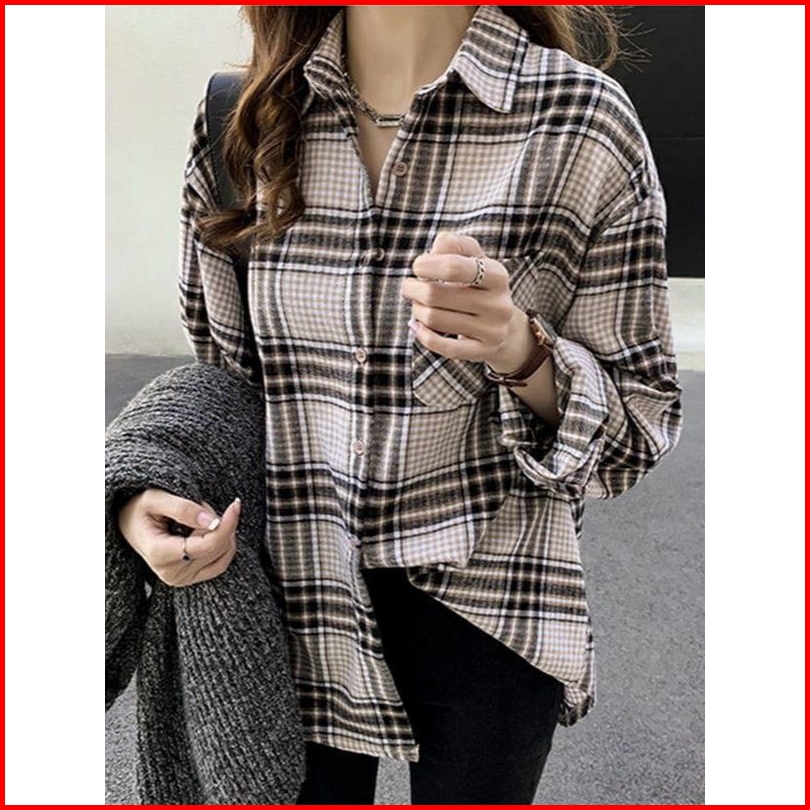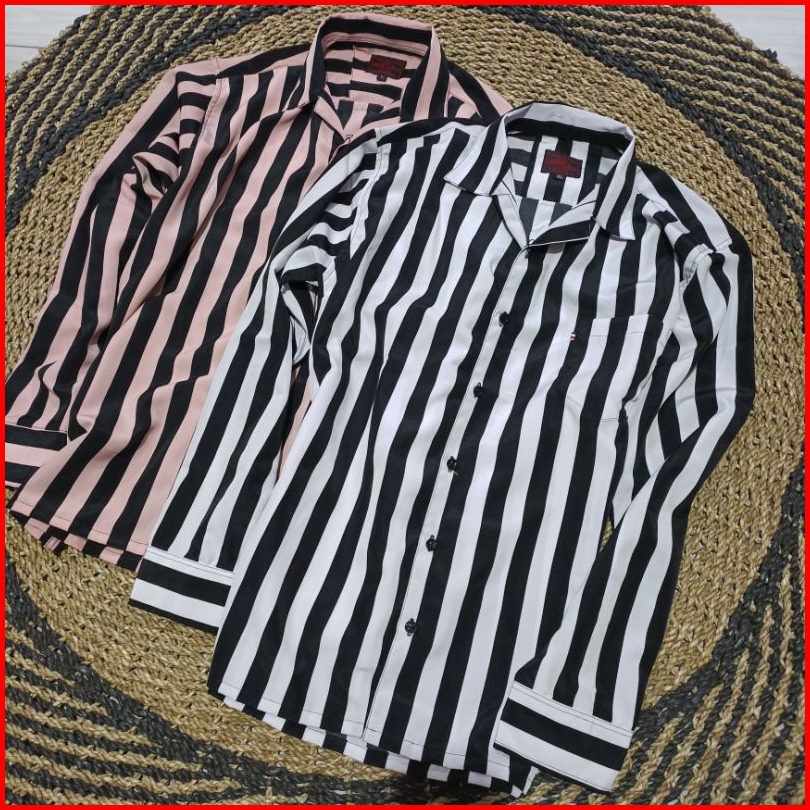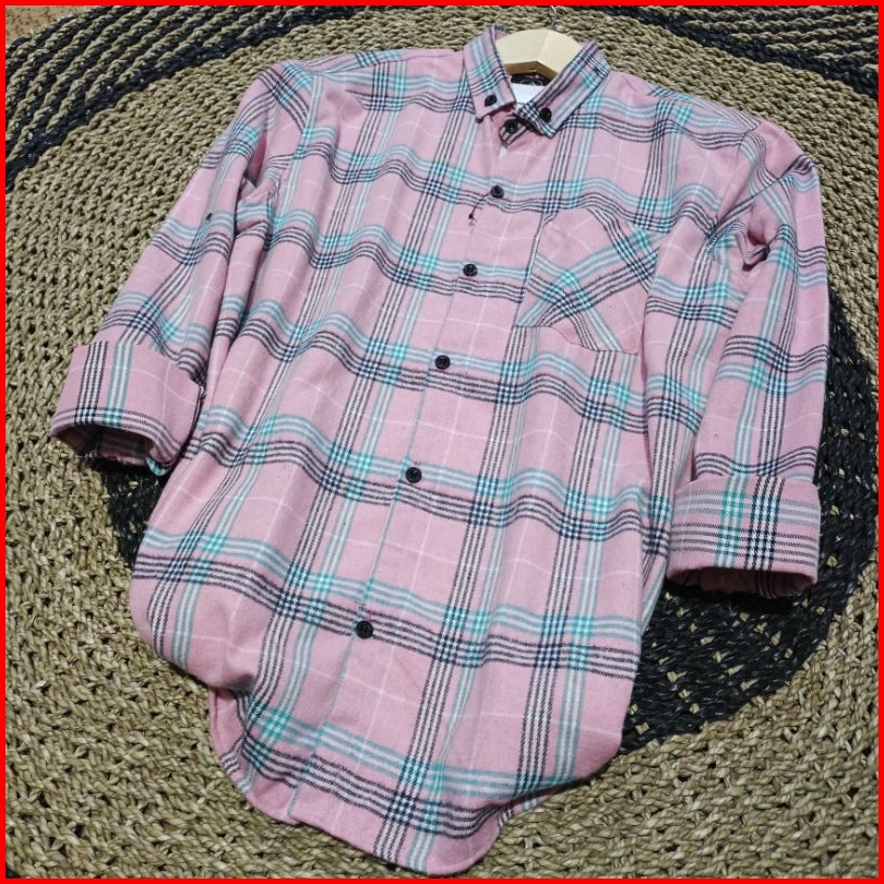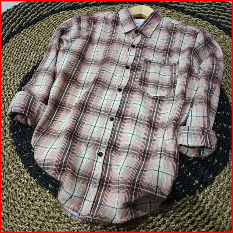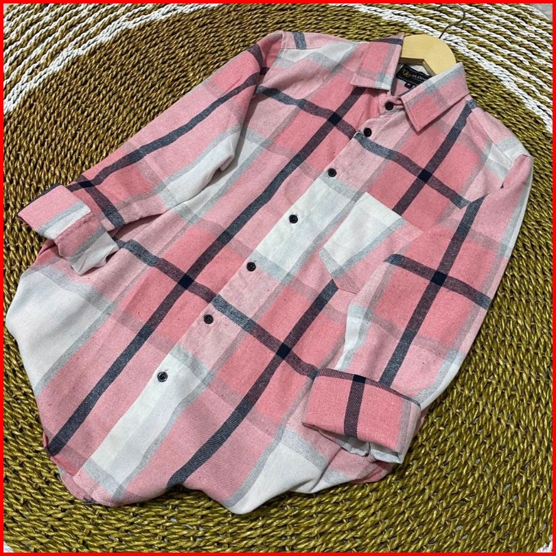 Otfit Kemeja Flanel Wanita Pink Dan Kemeja Salur Wolfis