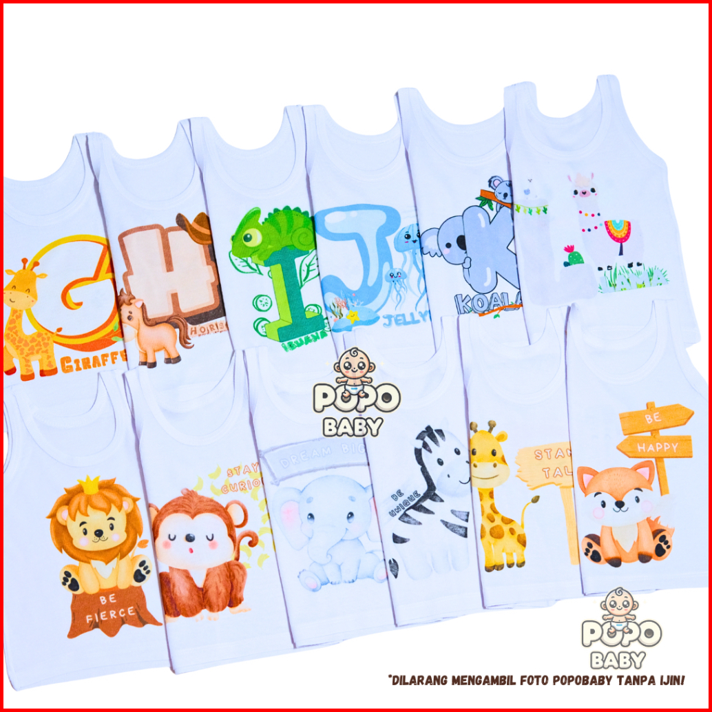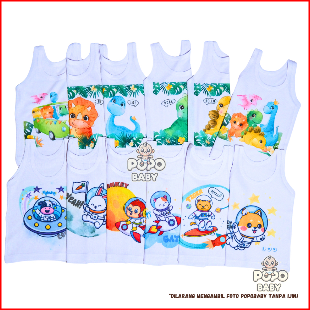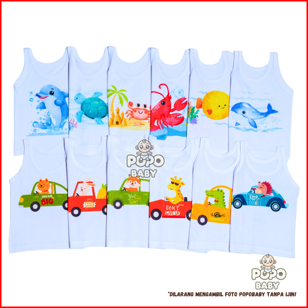 12pcs 1lusin Kaos Dalam Singlet Motif Bayi Anak 6motif Stiap Motif 2
