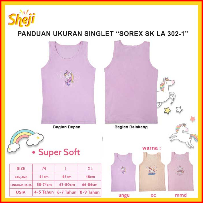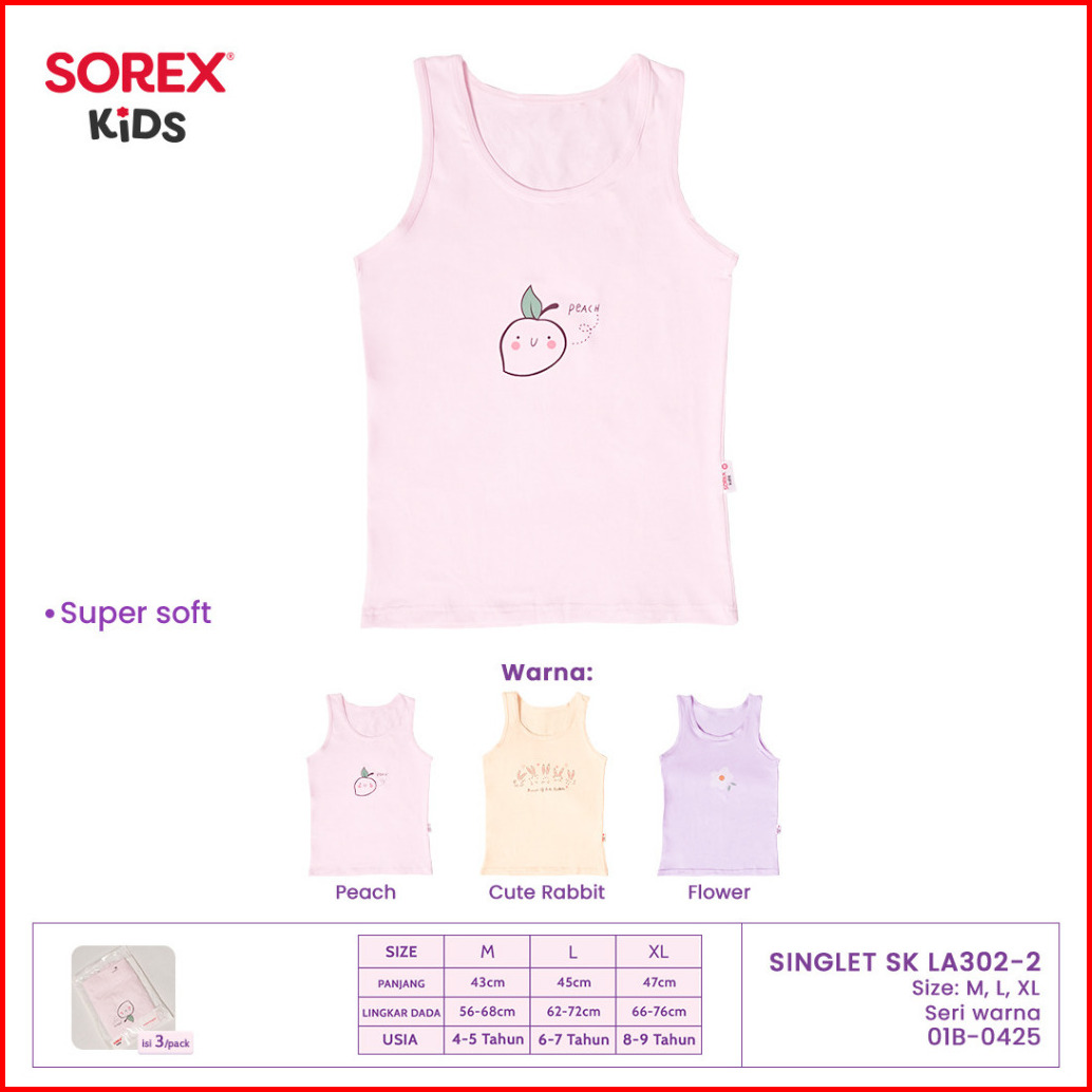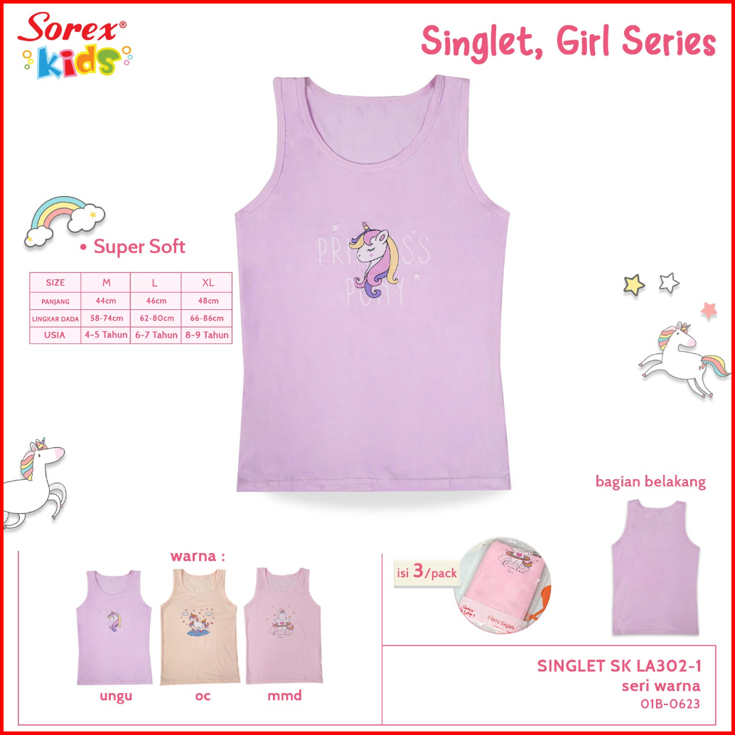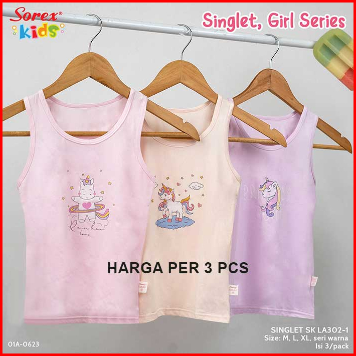 3 Pcs Kaos Singlet Anak Perempuan Sorex Sk La302-1 La302-2 Sorex Kids