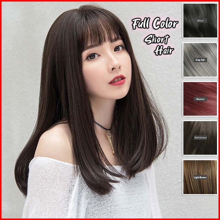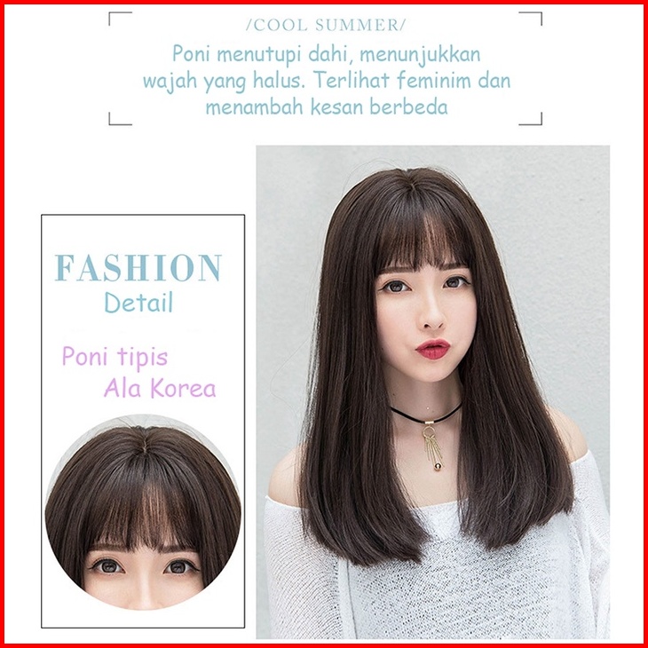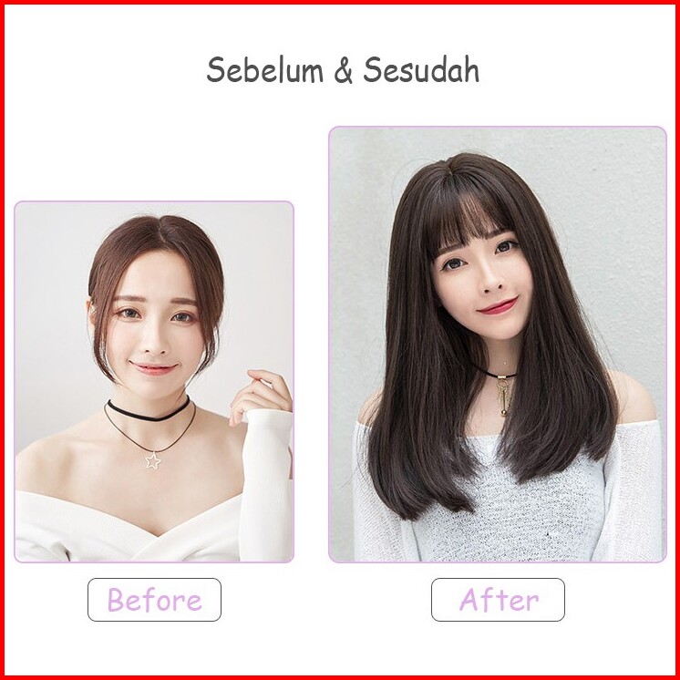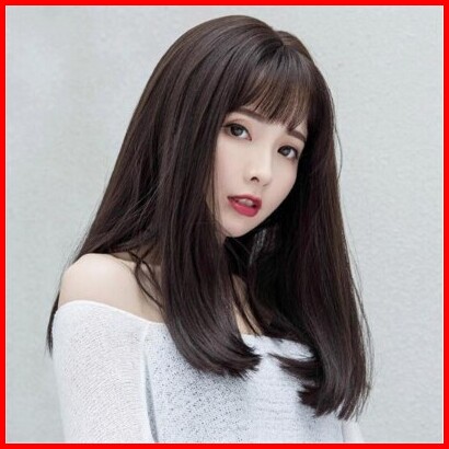 Wig Full Lace Rambut Palsu Wanita Panjang Berponi Korean Version Wig Long Half High Quality