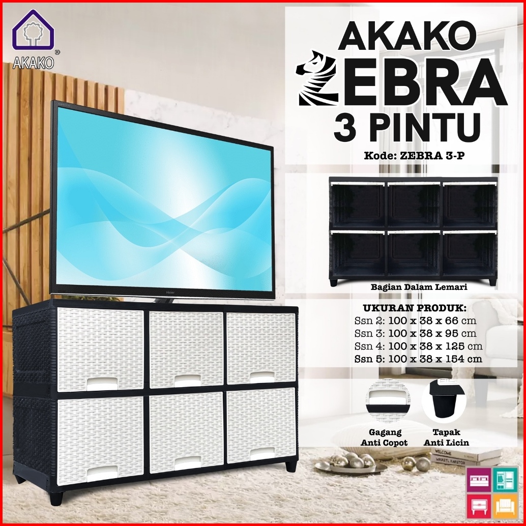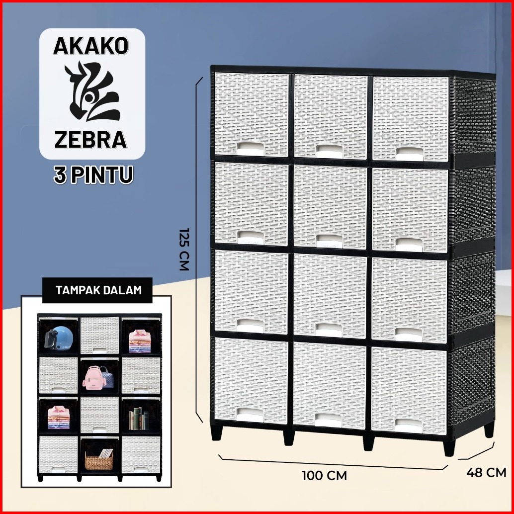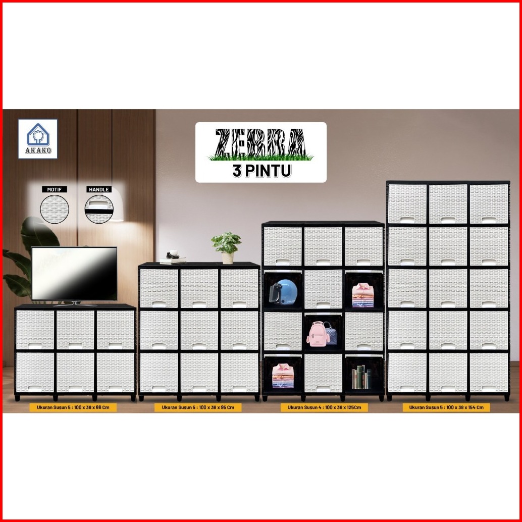Lemari Plastik Serbaguna Akako Zebra 3 Pintu Susun 2 New
