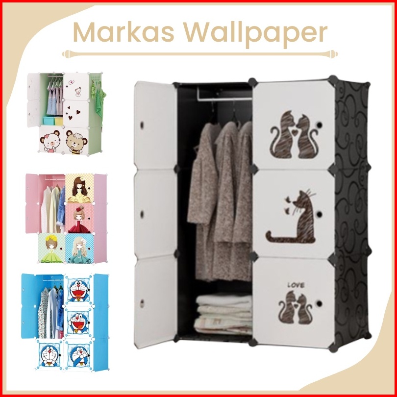 Lemari Pakaian Plastik Lemari Poratable Rak Baju Dan Gantungan 6 Pintu
