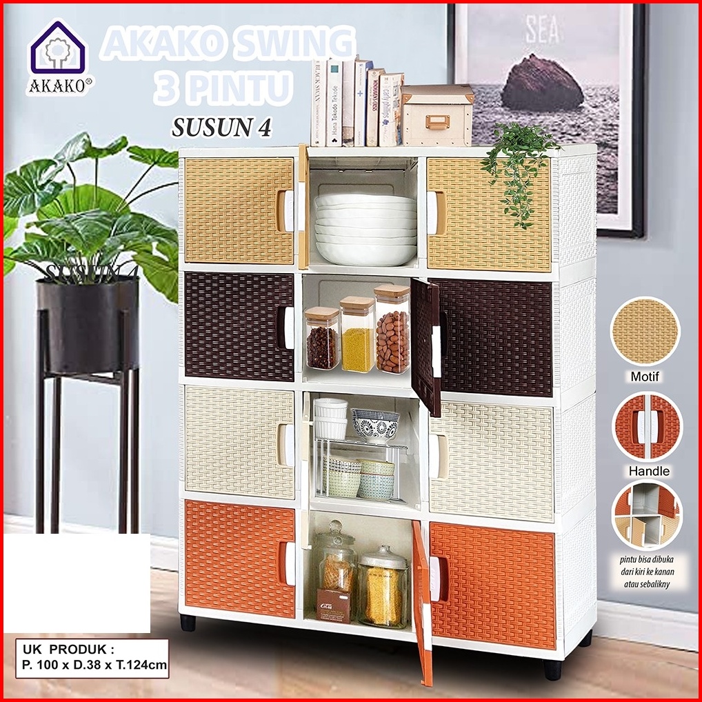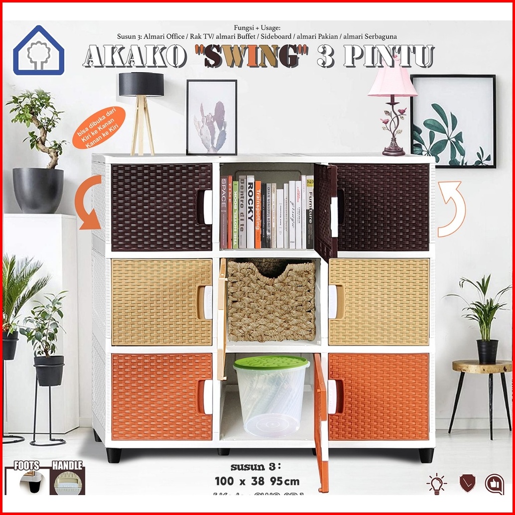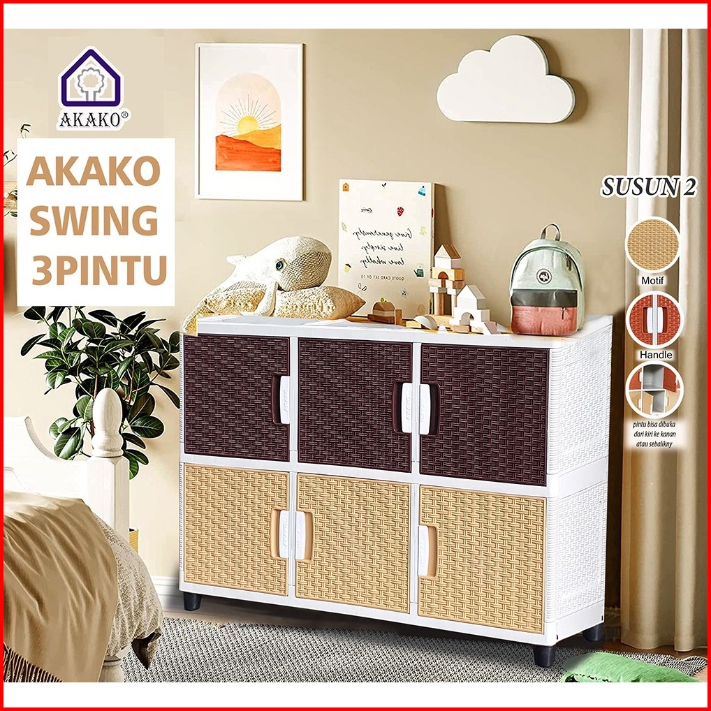 Lemari Pakaian Plastik Akako Swing 3 Pintu 6 Pintu 9 Pintu Rotan Murah Kuat