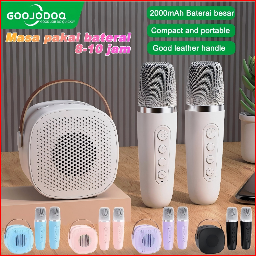 Goojodoq Speaker Bluetooth 2mic 1 Set Karaoke Speaker Ktv Cute Wireless Lucu Portabel Luar Ruangan Speaker Nirkabel