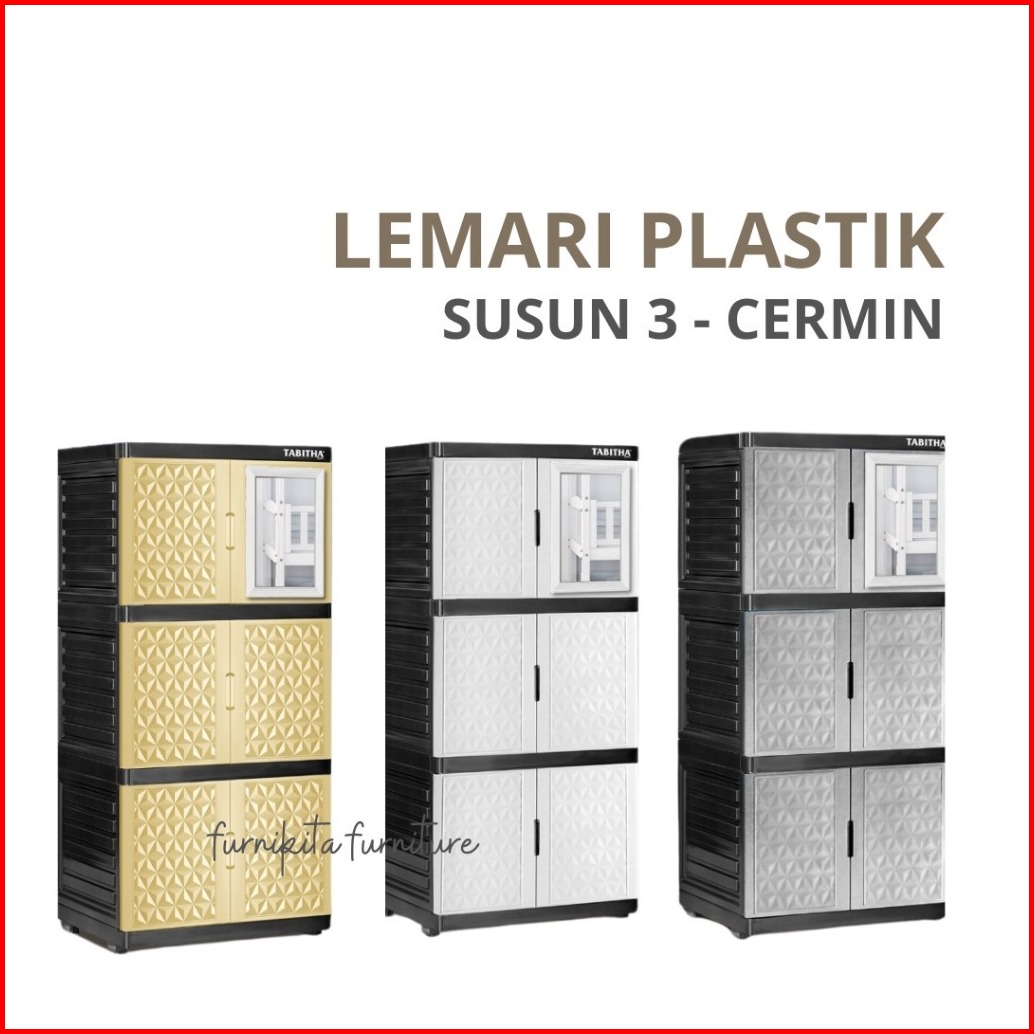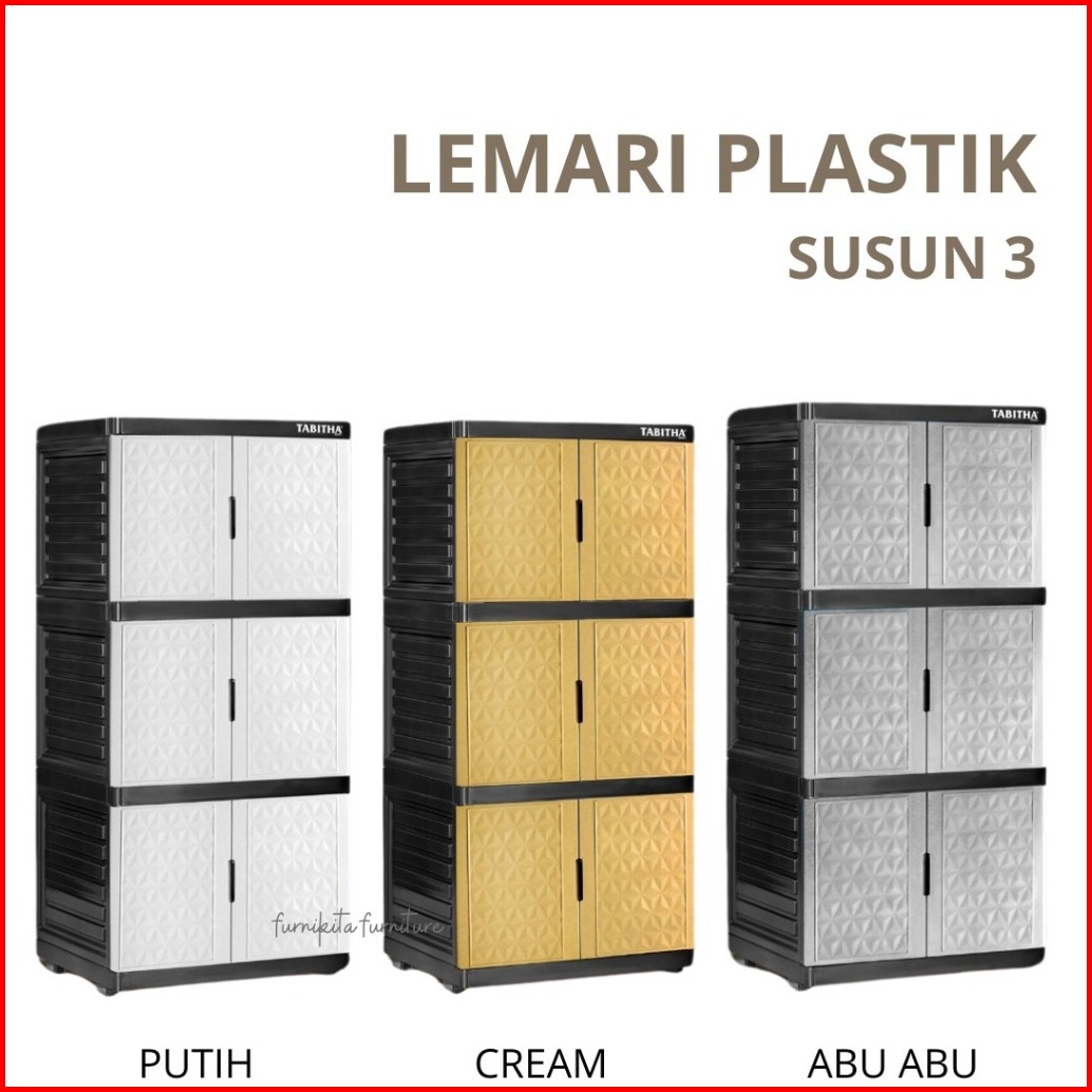 Lemari Pakaian Serbaguna Plastik Tabitha Minimalis Motif Rotan Susun 3