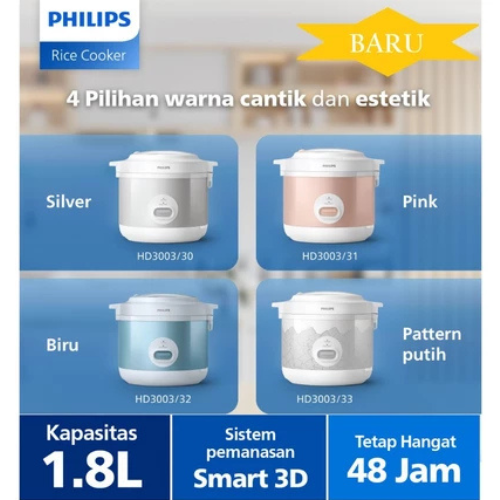 PHILIPS RICE COOKER HD-3003 1.8 LITER 3D HEATING SYSTEM MAGICOM ALUMINIUM TEFLON MAGIC COM PENANAK NASI ANTI LENGKET