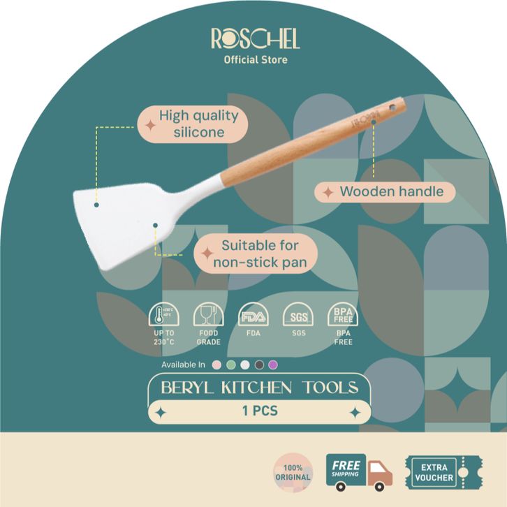 SPATULA SILIKON ANTI LENGKET ROSCHEL ALAT PERLENGKAPAN MASAK TAHAN PANAS WARNA HIJAU PUTIH ABU UNGU BEST SELLER MURAH