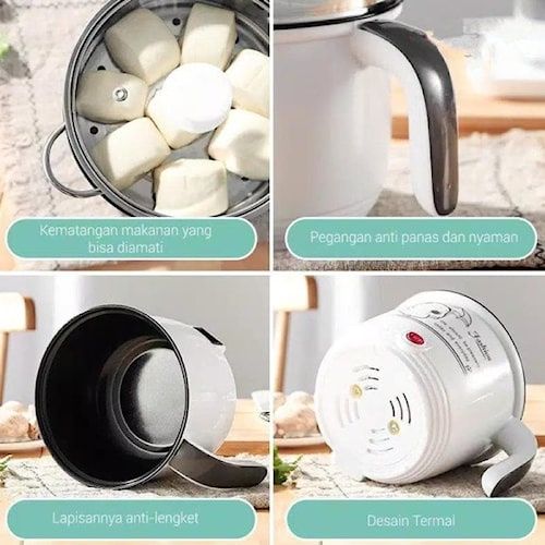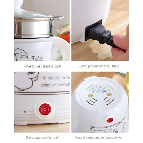 Panci Listrik Presto Set Kecil Serbaguna Kukus Nasi Penggorengan Elektrik Anti Lengket Portable Low Watt