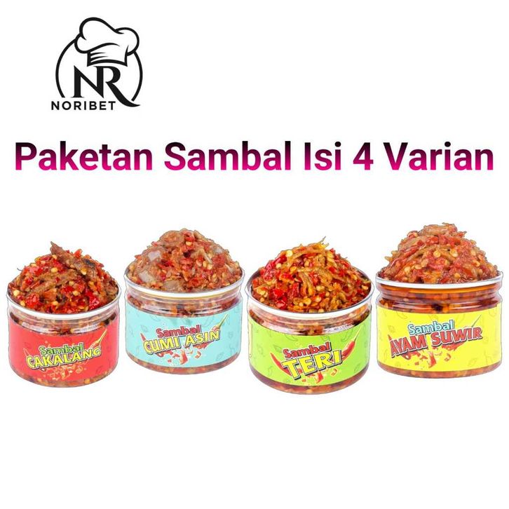 NR Noribet Paket 4 Set Sambal 1kan Cakalang - cum1 Asin - Teri Medan - ay4m Suwir