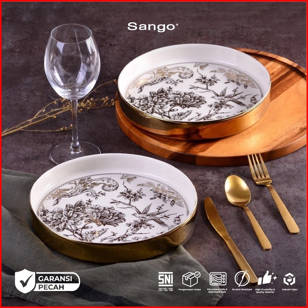 Sango Set Piring Makan Stackable Adelaide Electroplated Isi 2