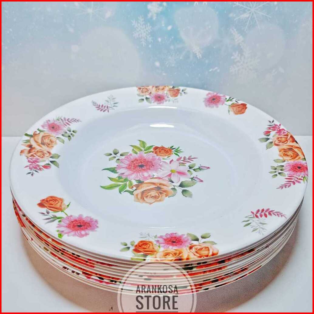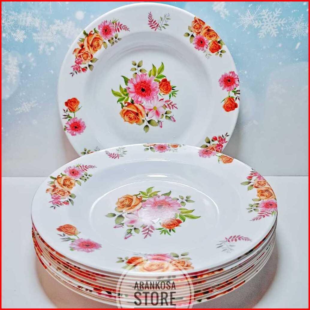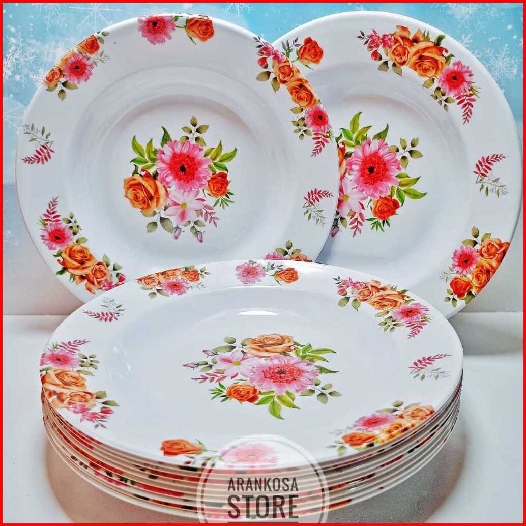 Paket Murah 12pcs Atau Satu Lusin Piring Melamine Motif Bunga Cantik 9inchi 23cm Kuat Dan Kokoh