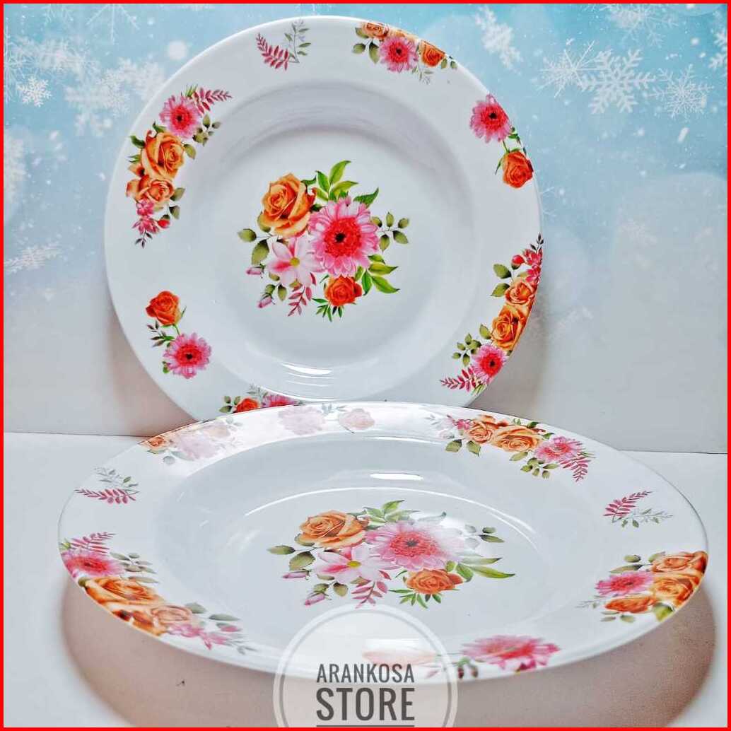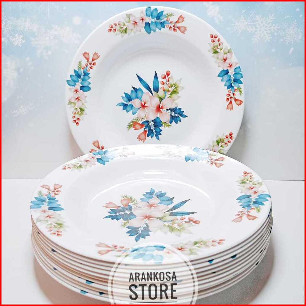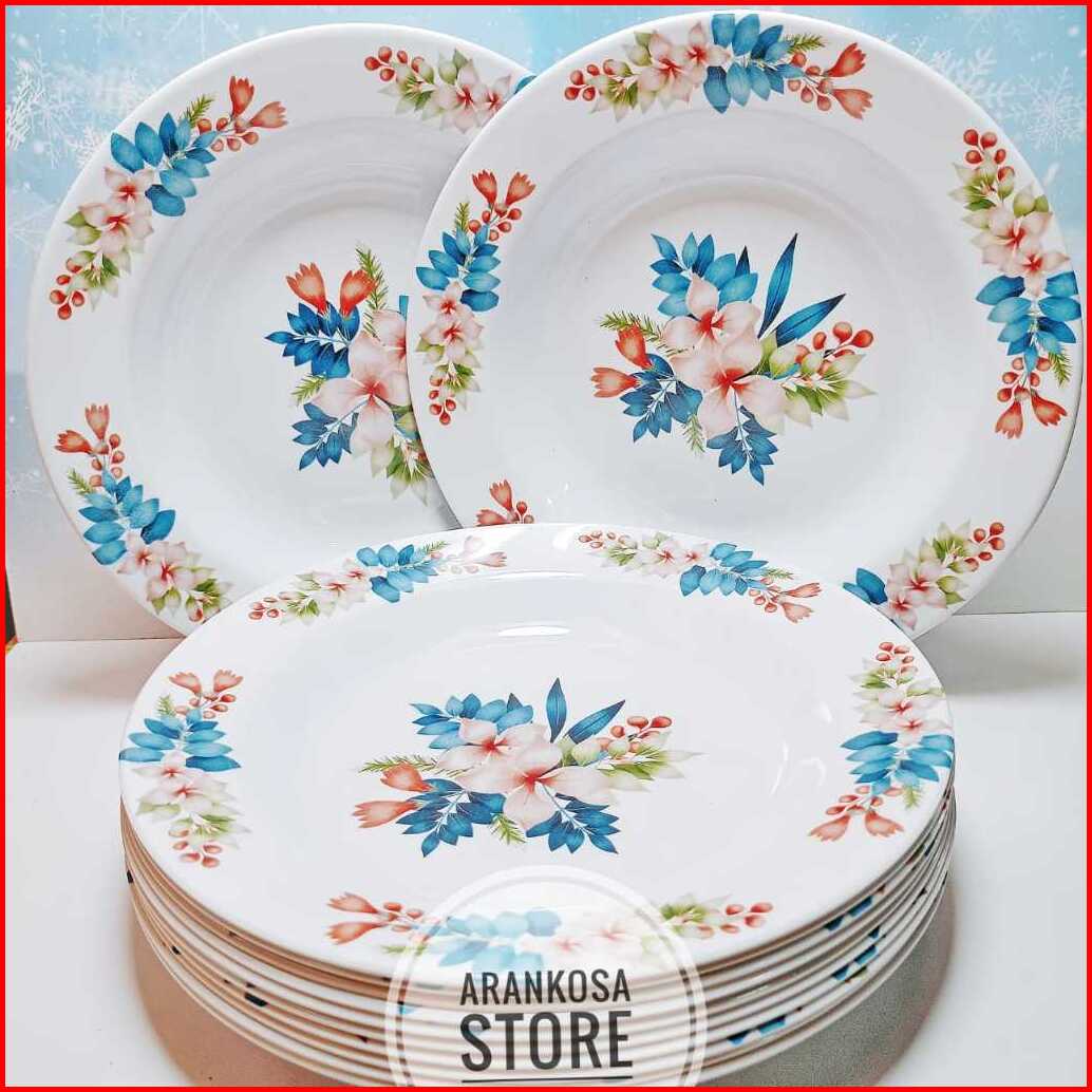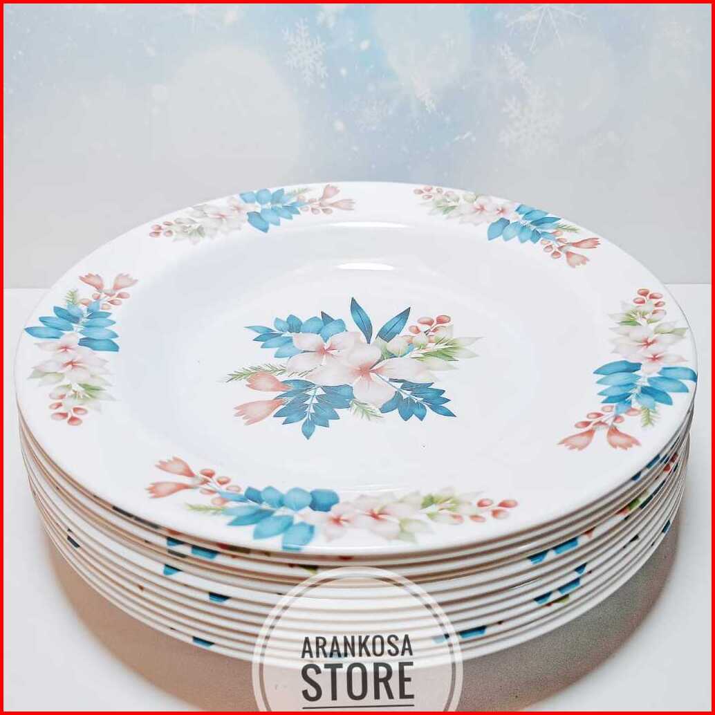 Paket Murah 12pcs Atau Satu Lusin Piring Melamine Motif Bunga Cantik 9inchi 23cm Kuat Dan Kokoh