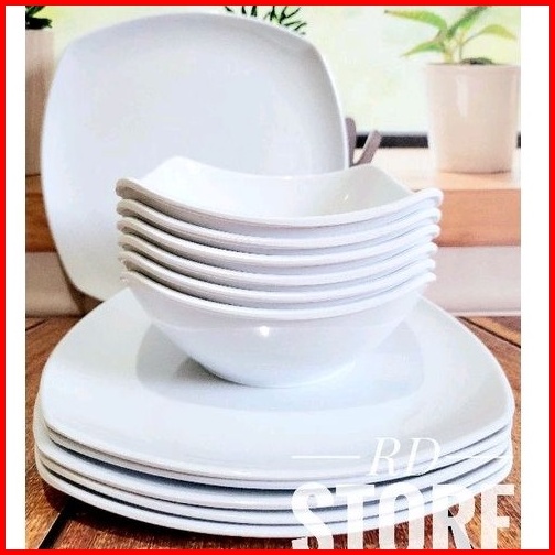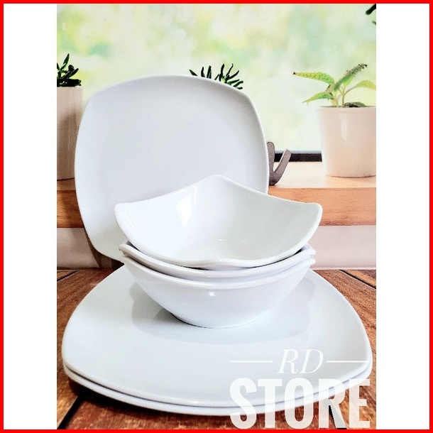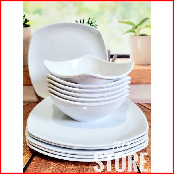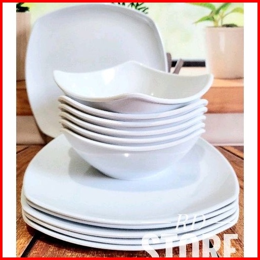 Promo 12.pcs Isi 6.piring 6.mangkok Melamine Polos