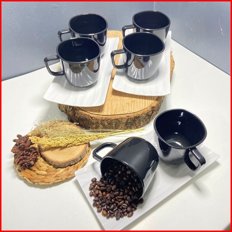 Glassware. Id 12 . Pcs Mug Kopi Melamine 250ml Gelas Cangkir Mug Gagang Lucu Gelas Gagang Melamin Gelas Warna Warni Cang