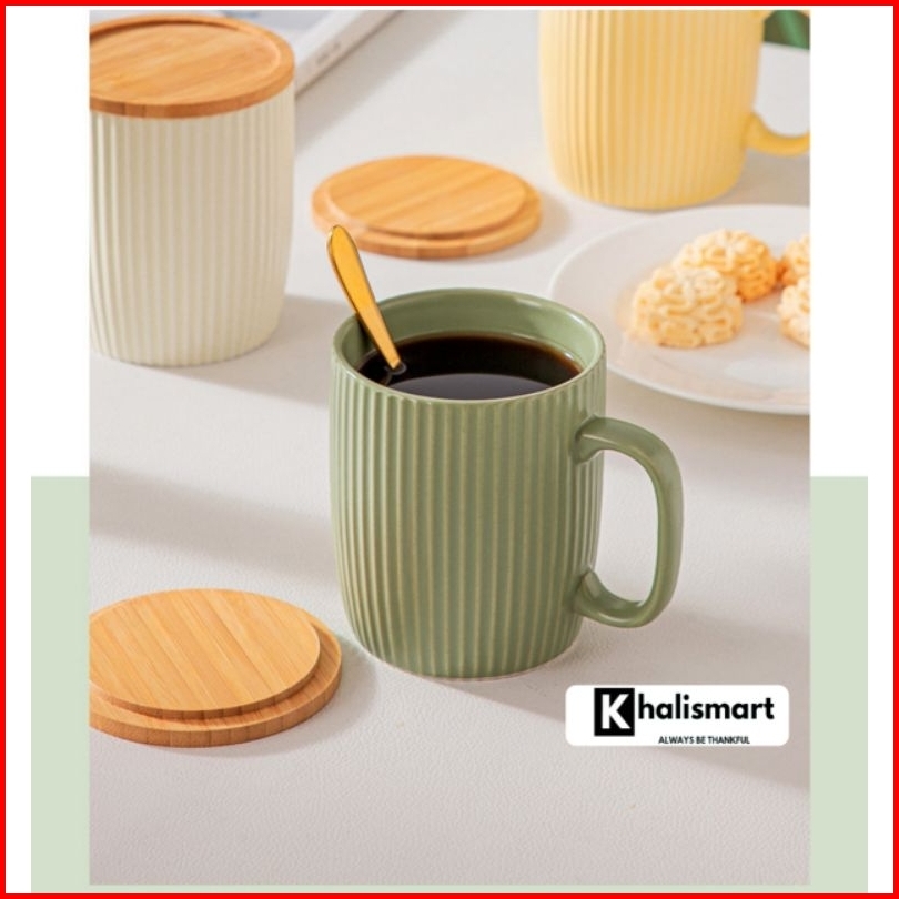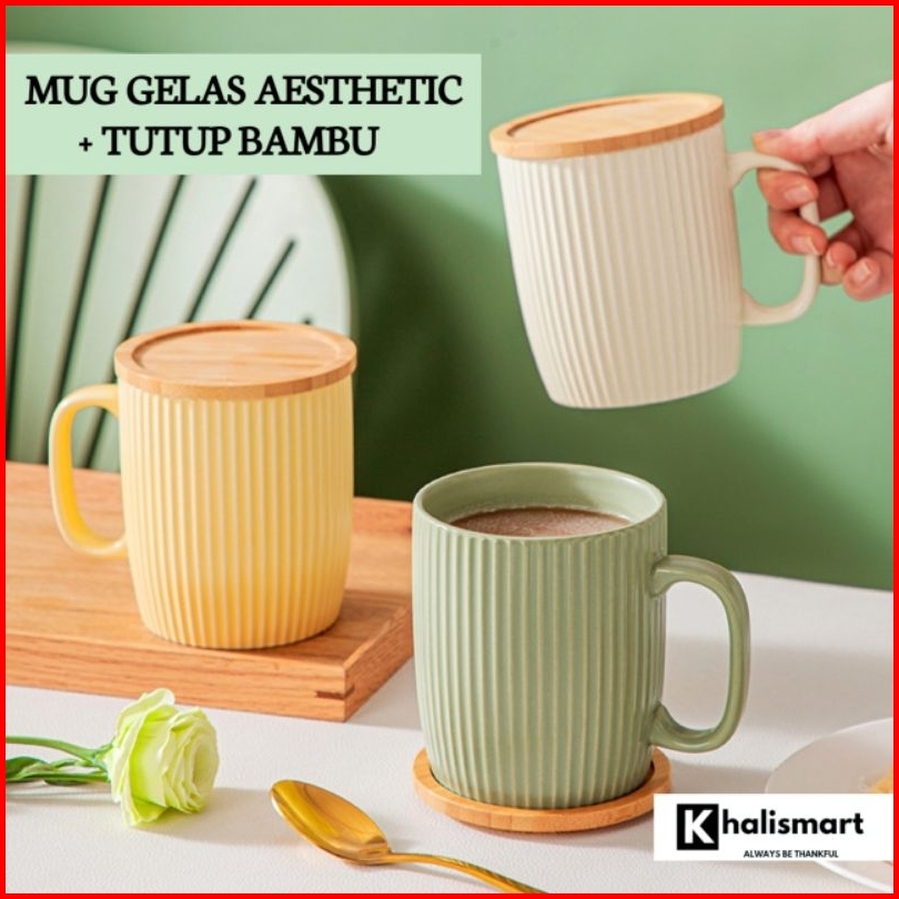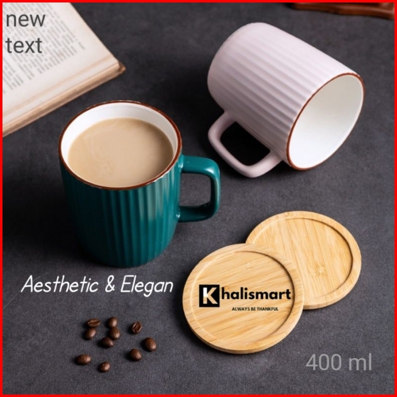 Mug Gelas Kopi Teh Susu Keramik Dengan Tutup Mug Keramik Aestethic Tutup 400 Ml