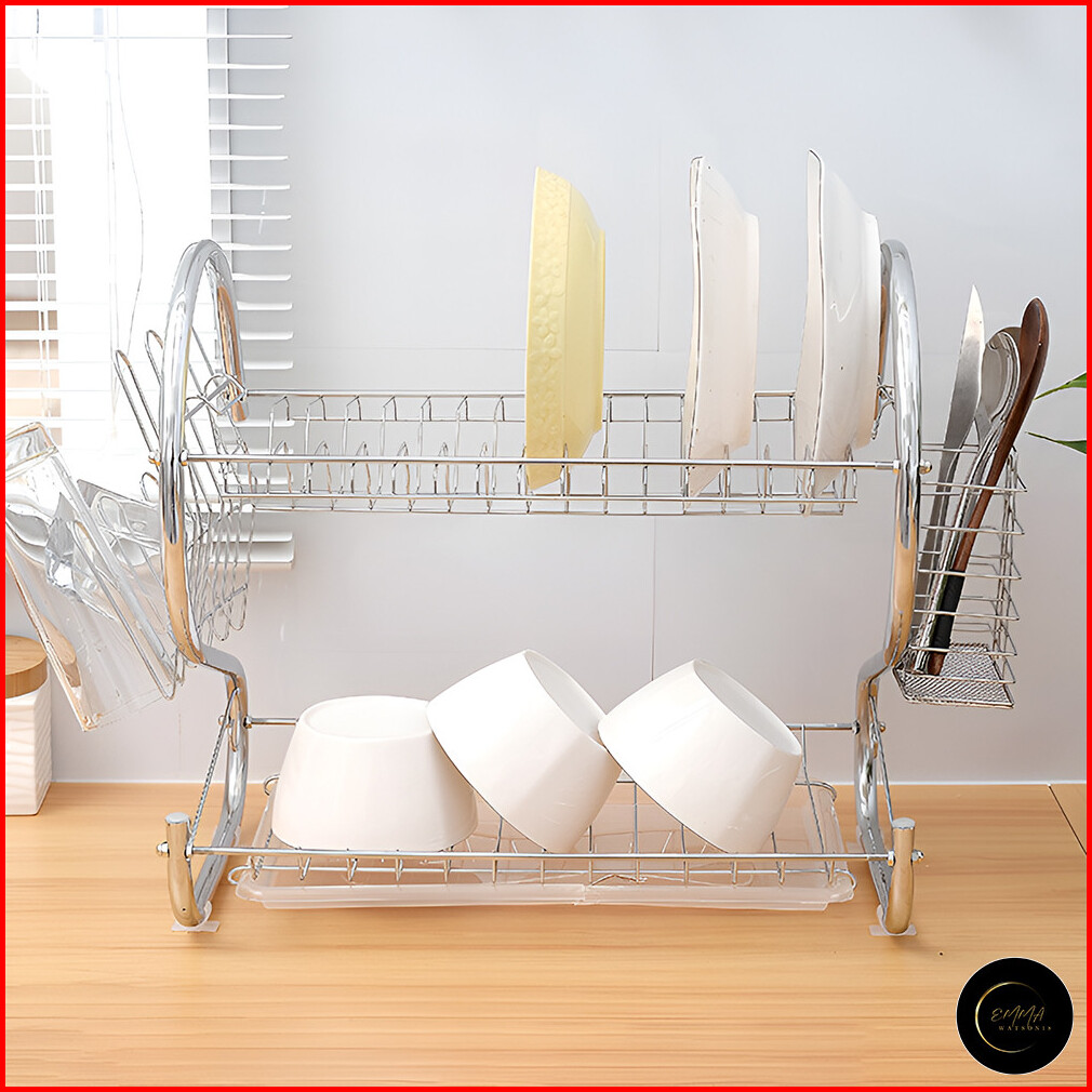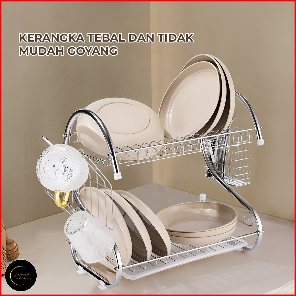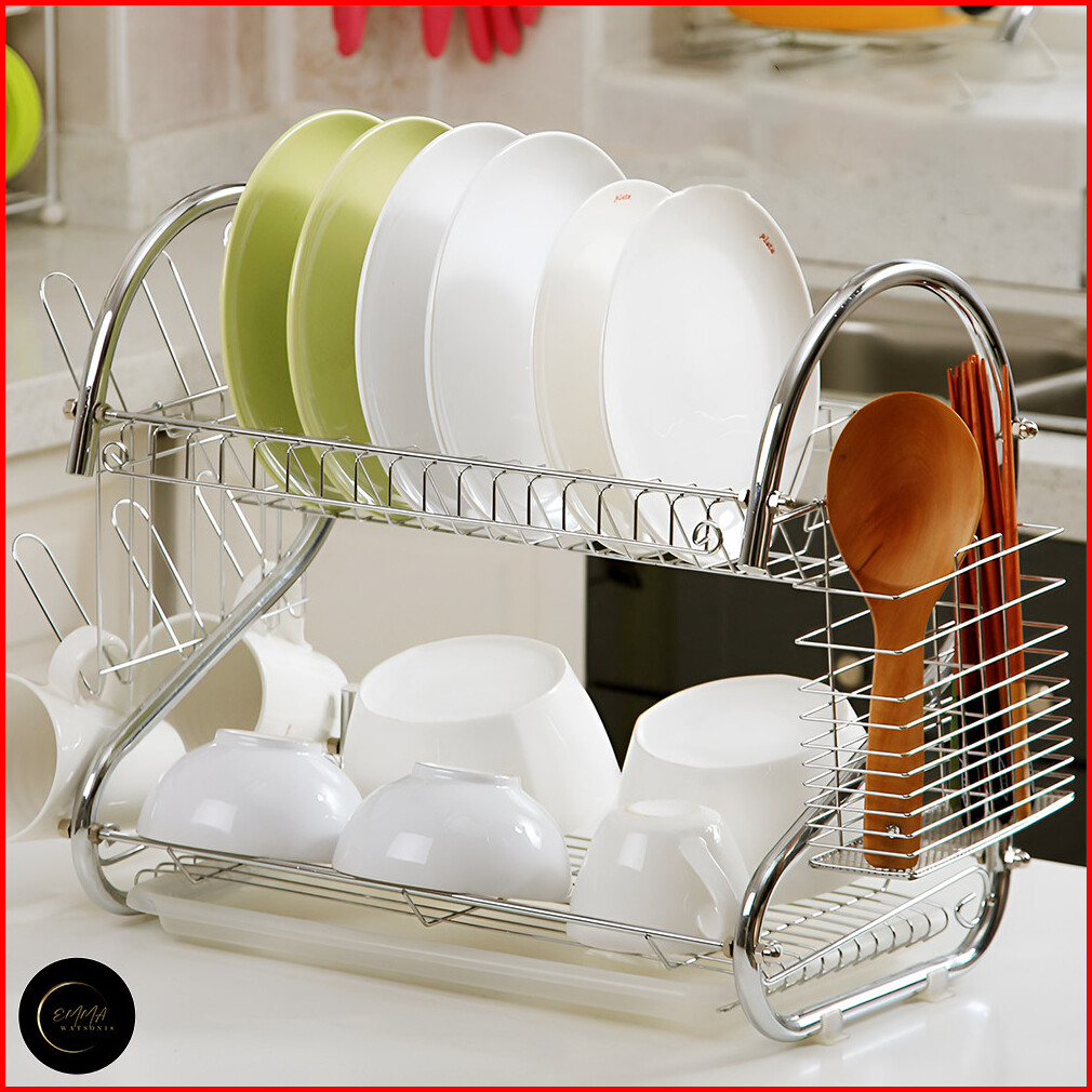 Em Rak Piring 2 Susun Stainless Dish Drainer P35