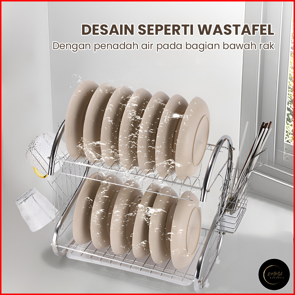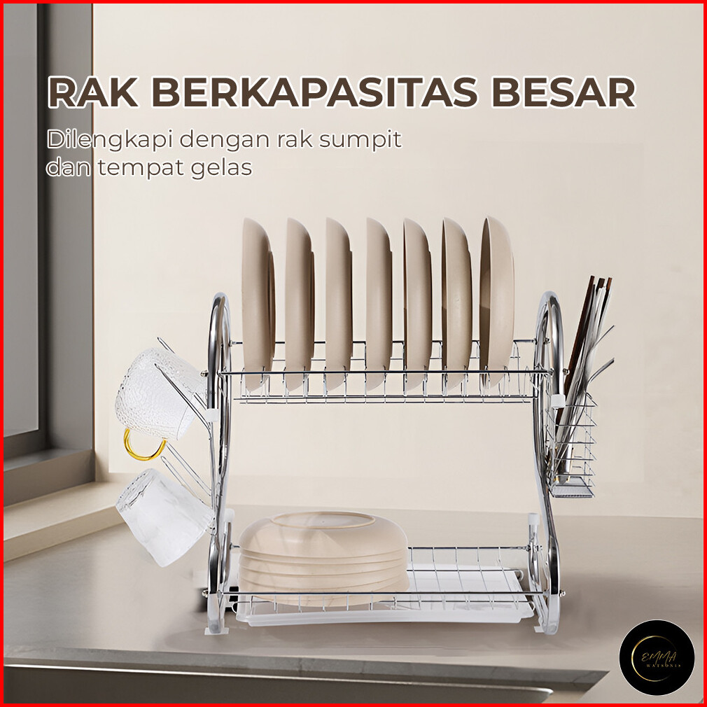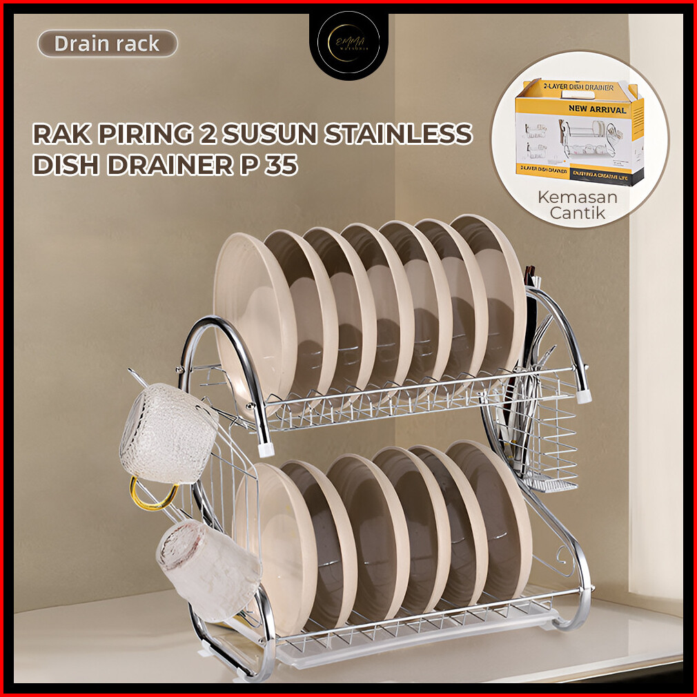 Em Rak Piring 2 Susun Stainless Dish Drainer P35