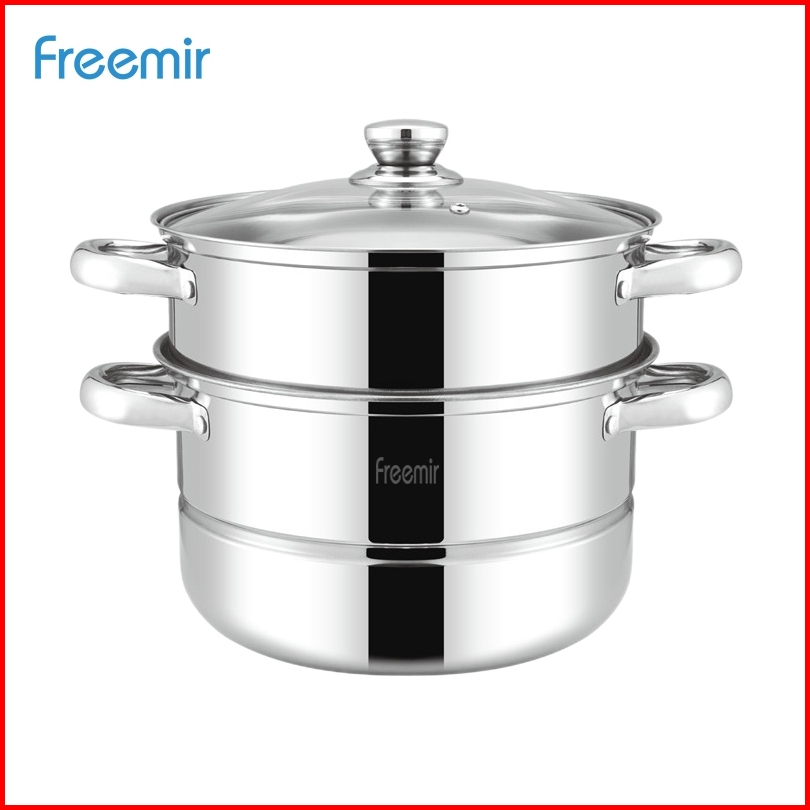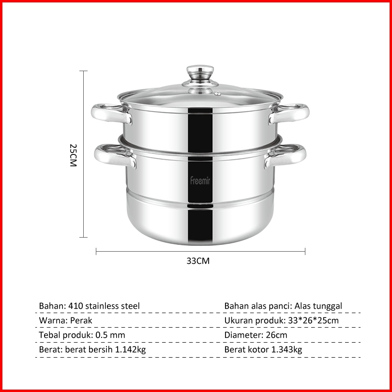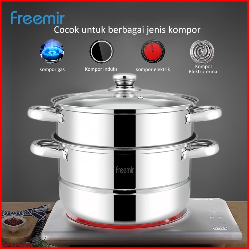 Freemir Kukus Dan Wajan Panci Rebus Panci Steamer 2 Tingkat Pengukus Alat Kukus 2 Layer Panci Kukusan Stainless Steel Tu