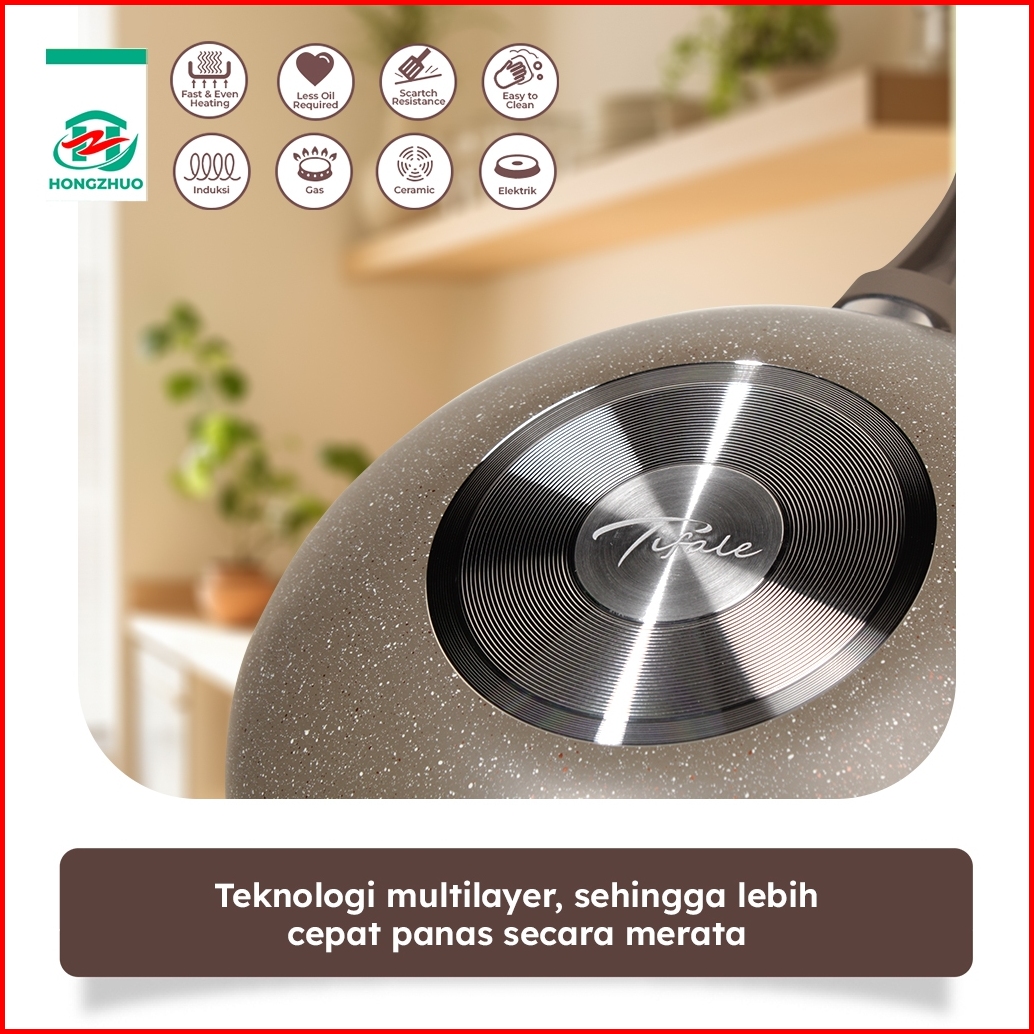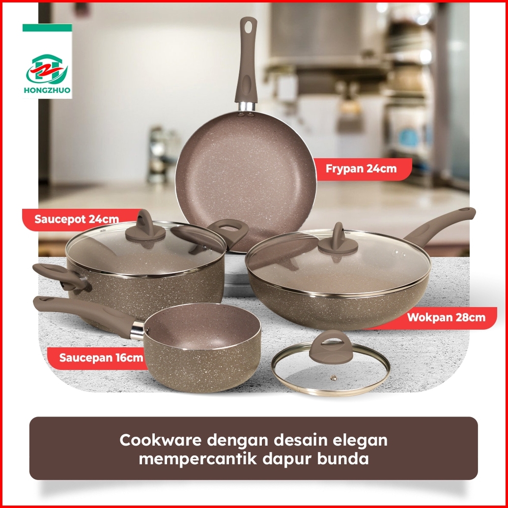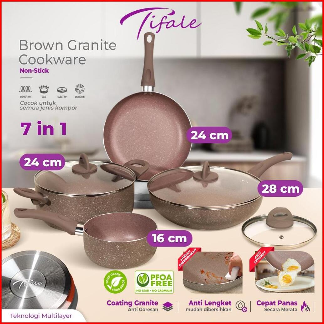 Tifale By Hongzhuo Brown Granite Granit Coklat Antilengket Peralatan Masak Dapur 7pcs Untuk Semua Kompor Panci Wajan Pen