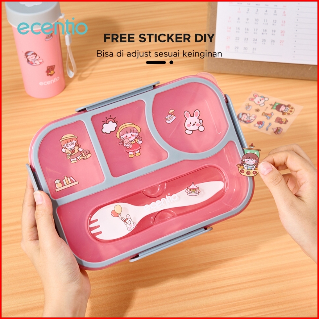 Ecentio Kotak Bekal Makan Set 1100ml Sekat 4 Dengan Sticker Bpa Free Lunch Box Set Gratis Botol Minum