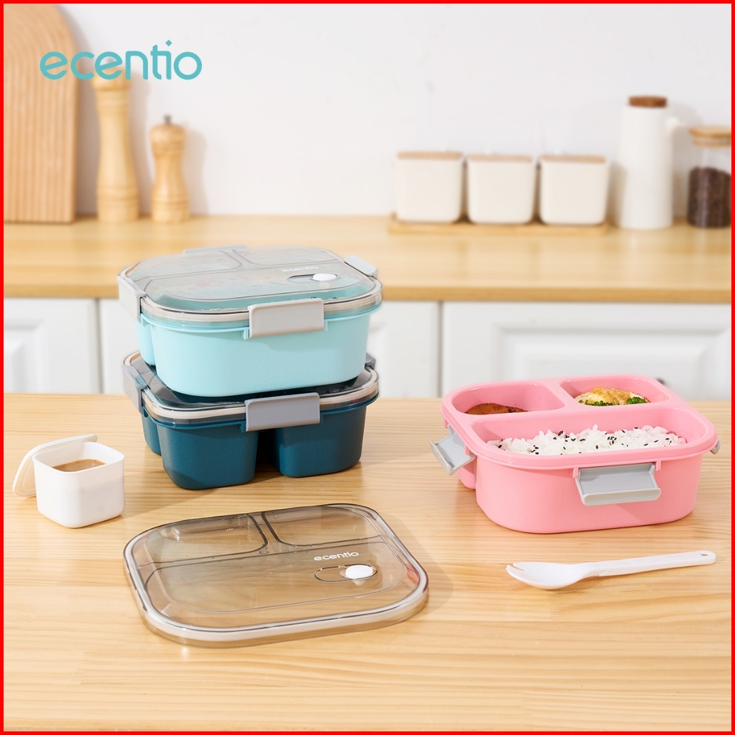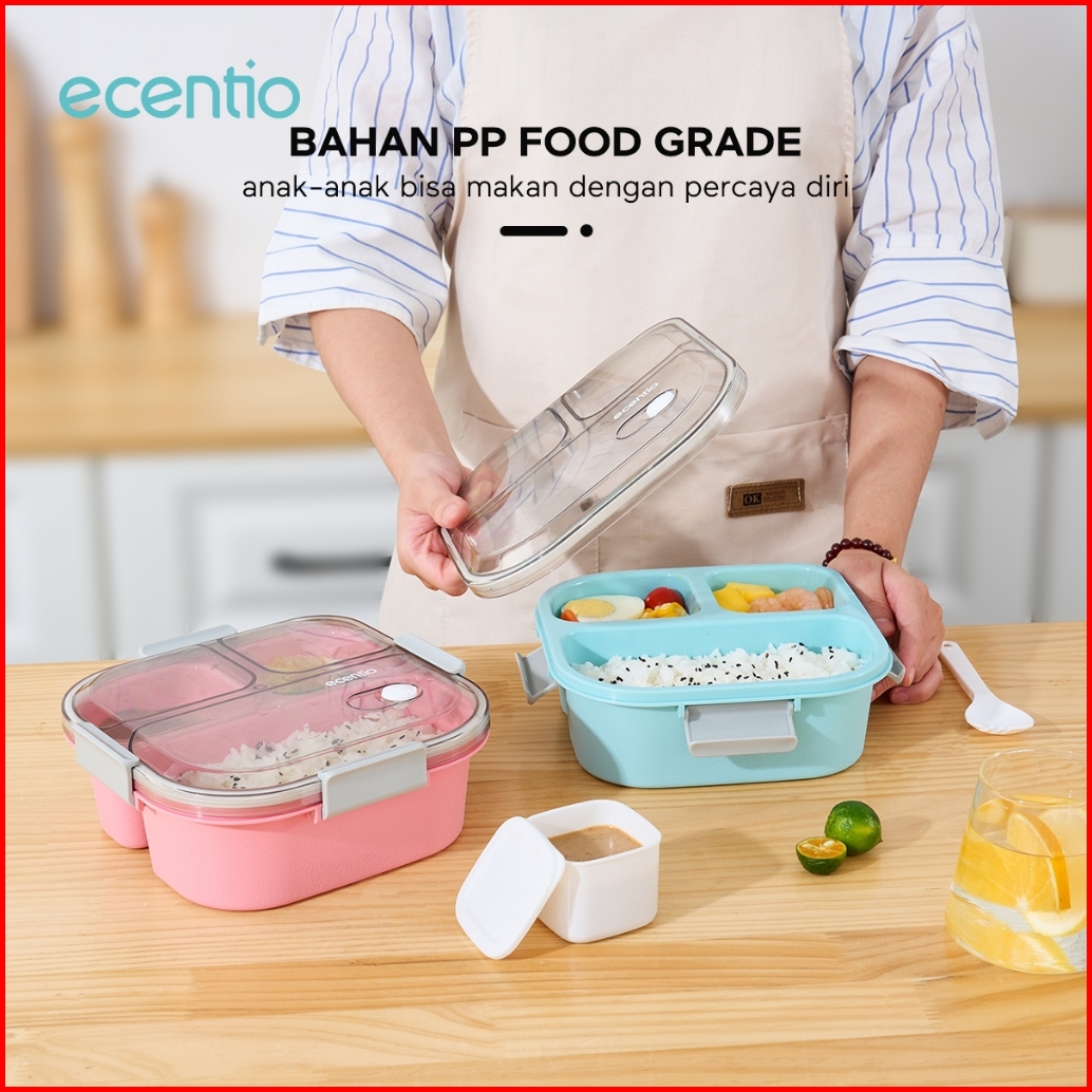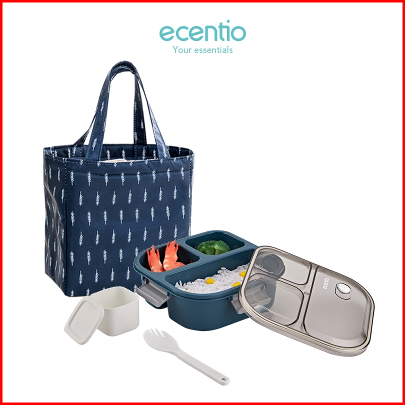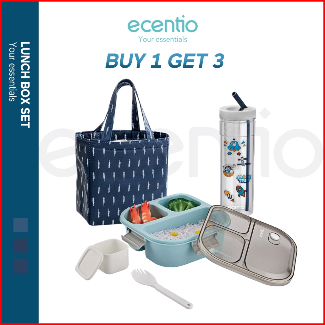 Ecentio Lunch Box Set Tas Bekal Makan Anti Tumpah 3 Sekat Dan Botol Minum