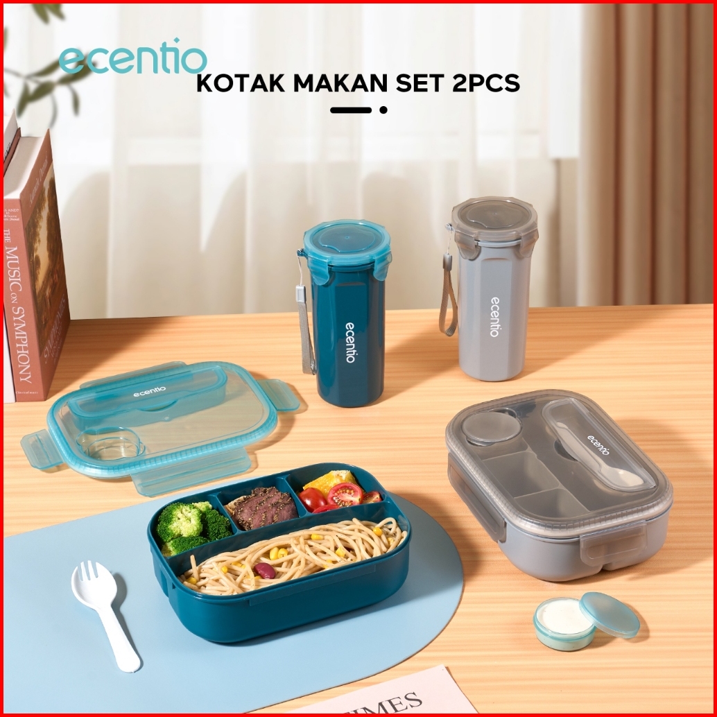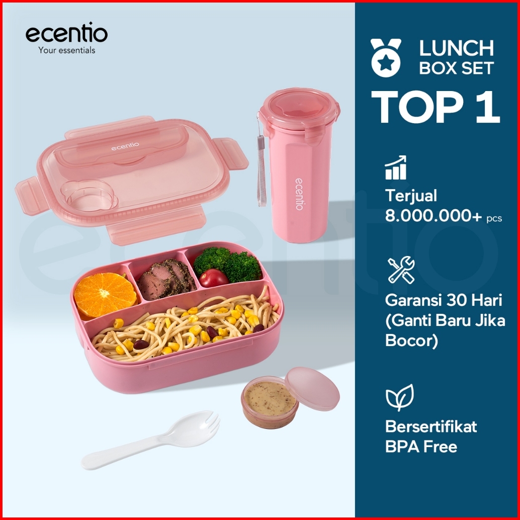 Bekal Makan Setecentio 1200ml Lunch Box Set 4 Grid Anti Bocor Tempat Bekal Makan Dan Tempat Minum Anak Kotak Makan Anti