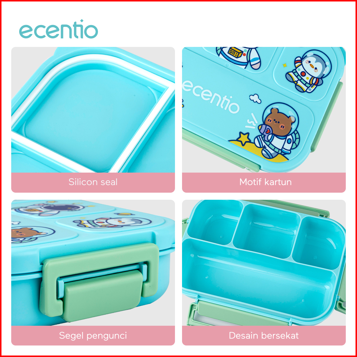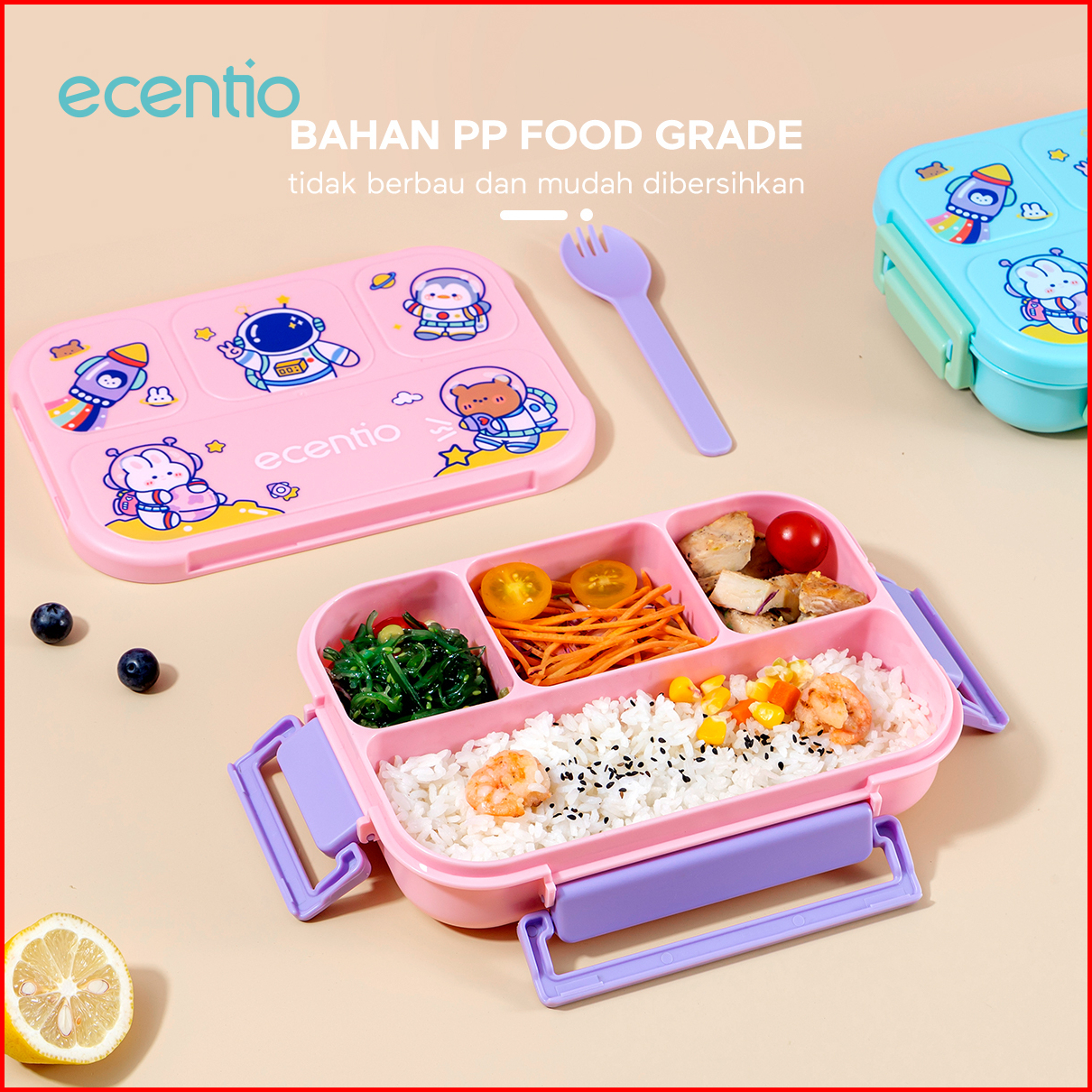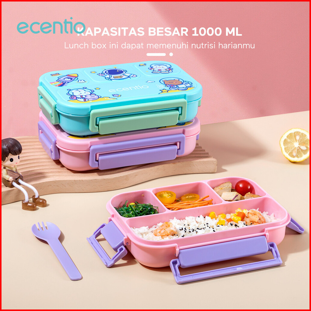 Ecentio Lunch Box Set 1000ml Anak Dan Botol Minum Anti Bocor Bpa Free