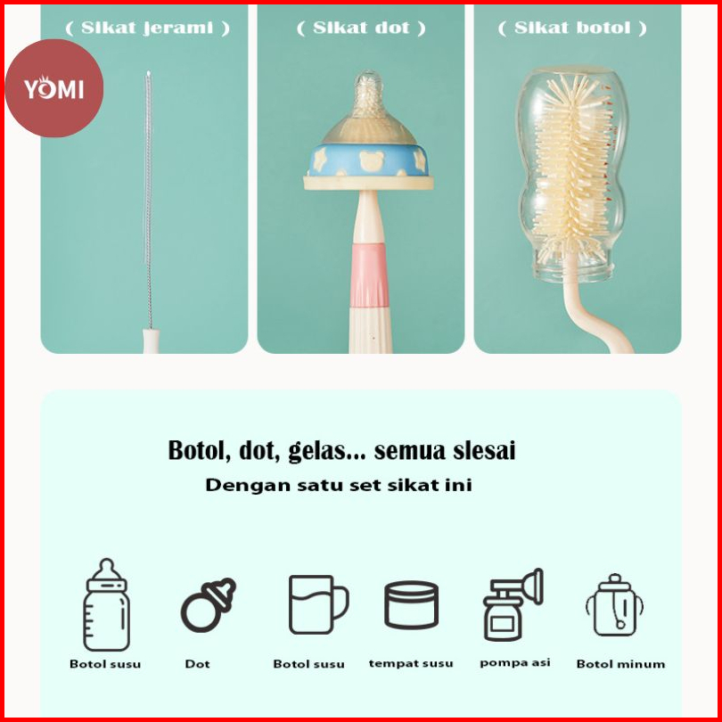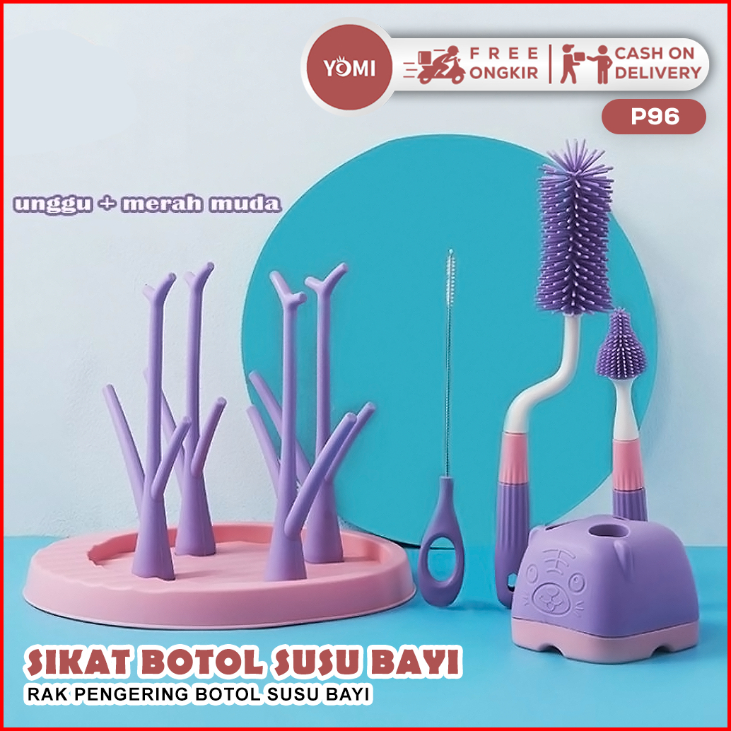 Yomi - Rak Pengering Botol Susu Bayi P96 Sikat Botol Susu Bayi 4 In1 P95