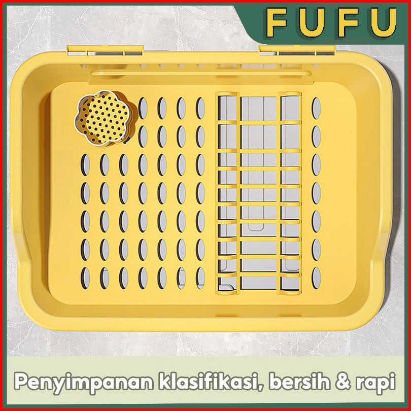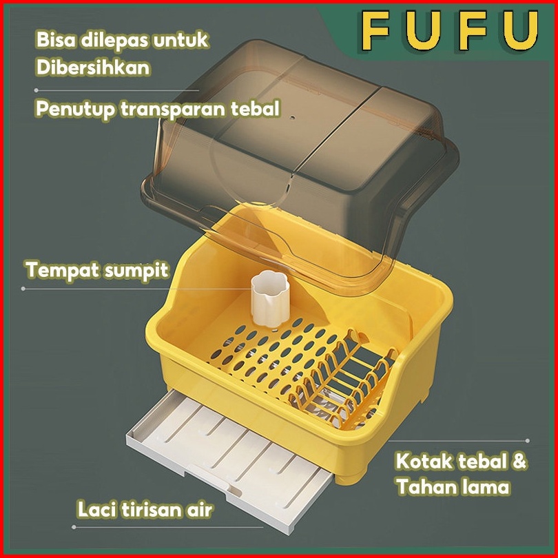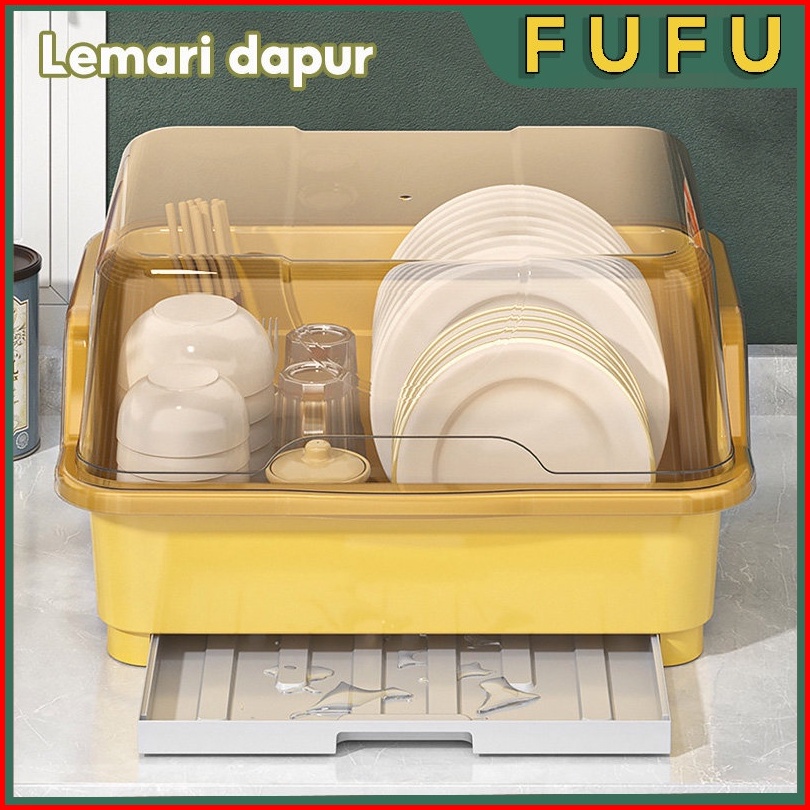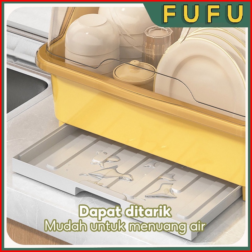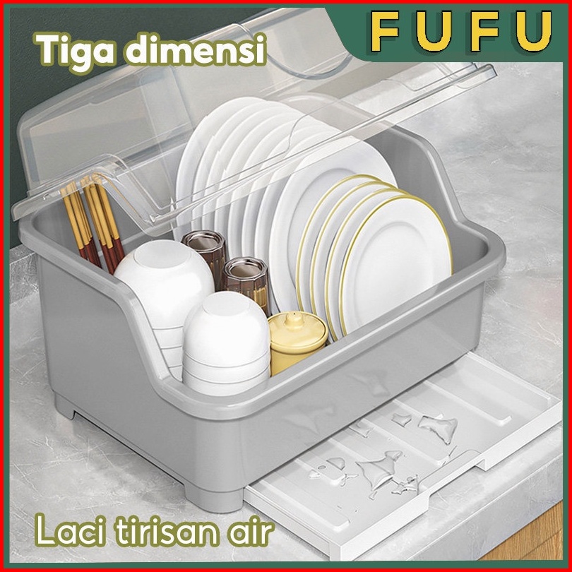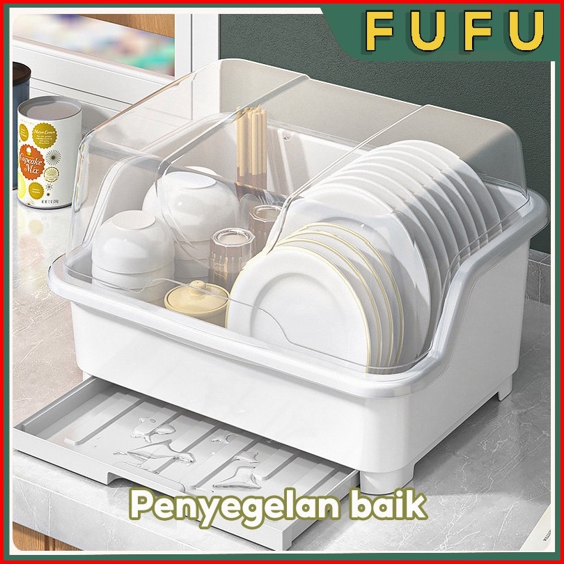 Fufu Rak Piring Rak Pengering Piring Rak Piring Tertutup Penyimpanan Piring Basah Mangkok Sendok Garpu Rak Dapur Ring Pl