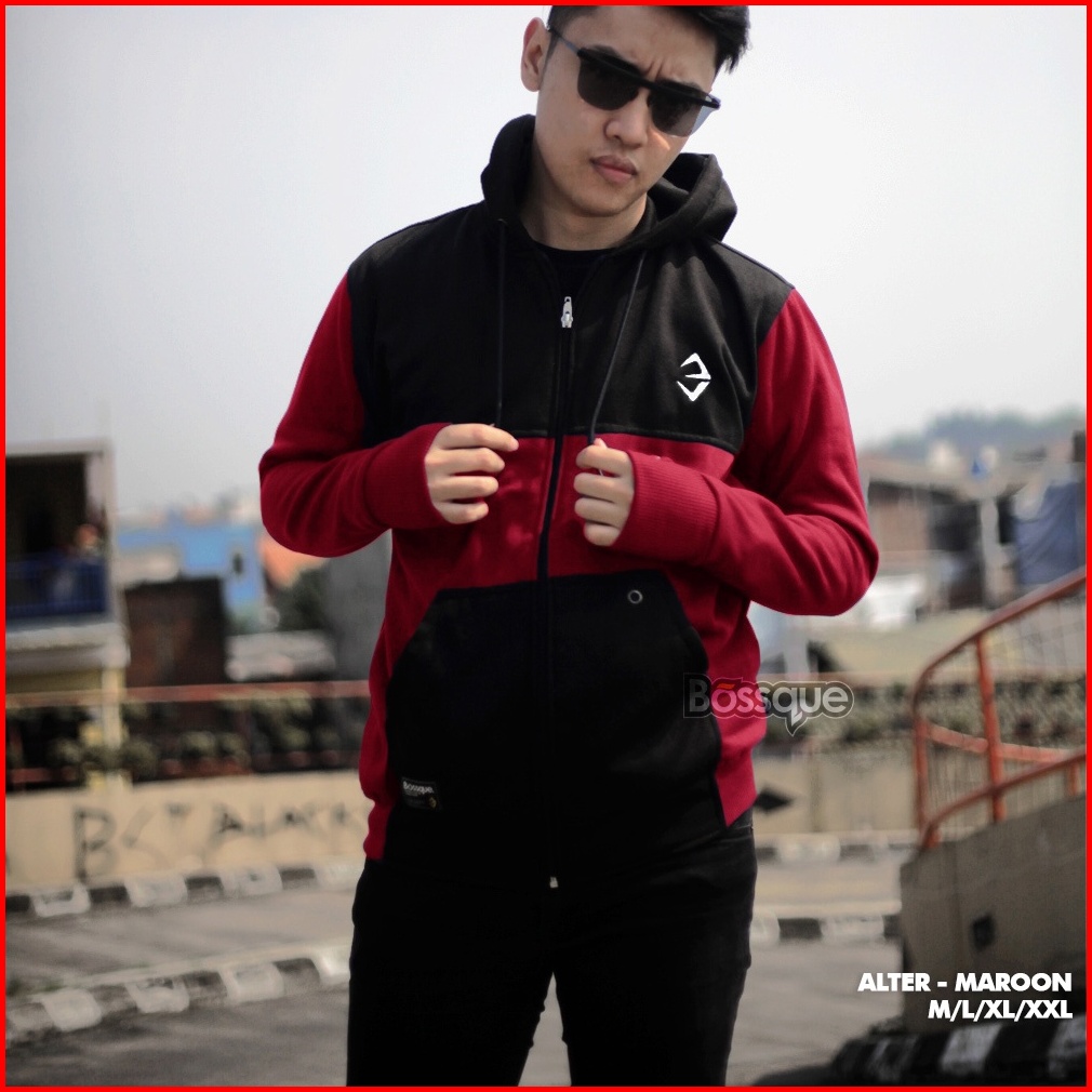Bossque- Alter Hoodie Zipper Sweater Pria Pullover Hodie Pria Sweter Cowo Jaket Pria Keren Roundhand