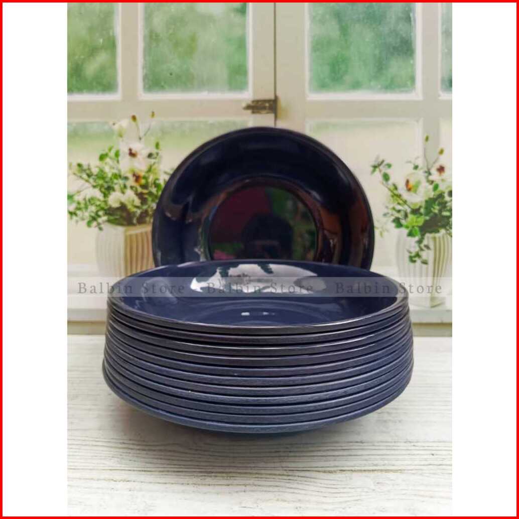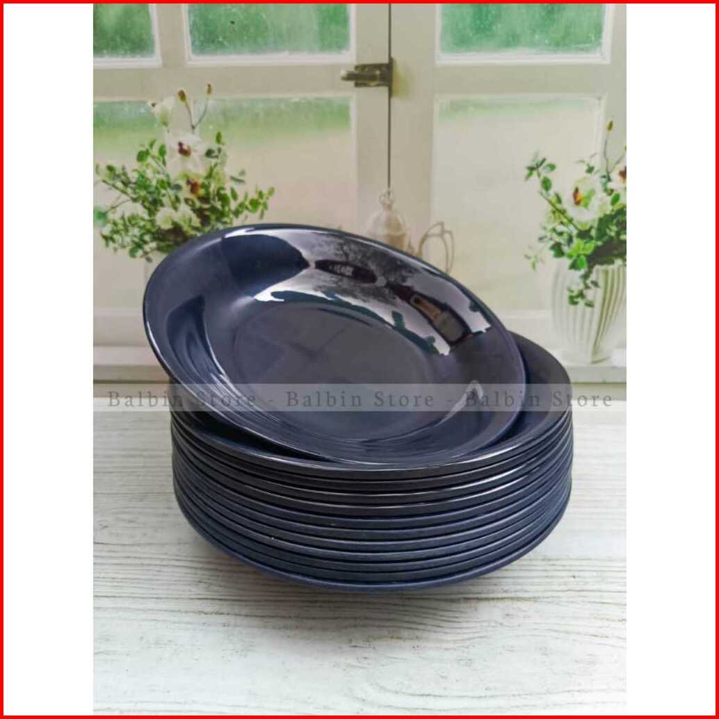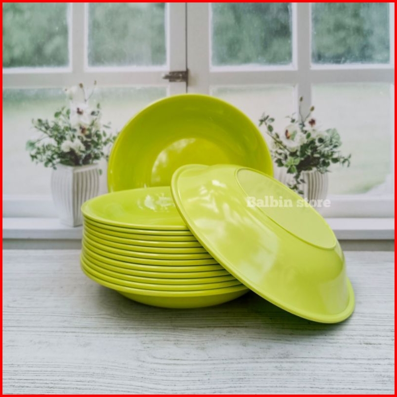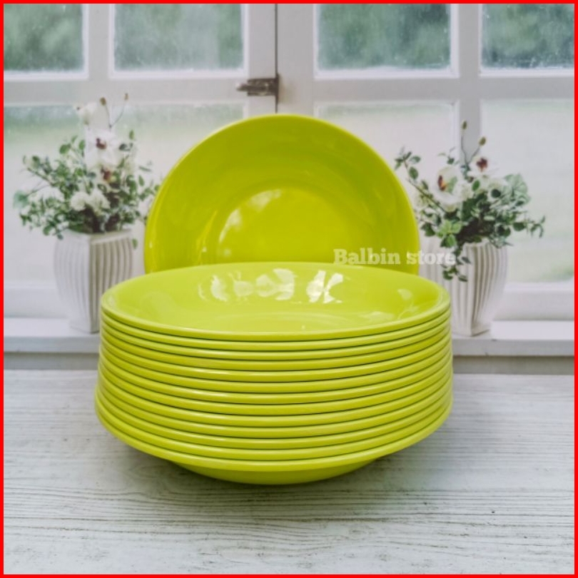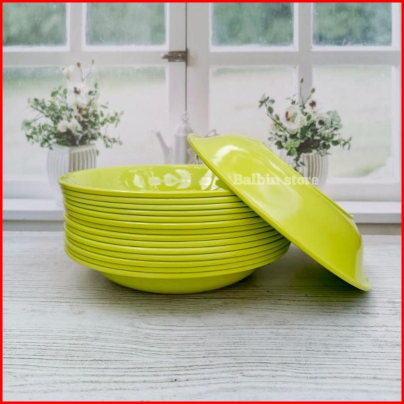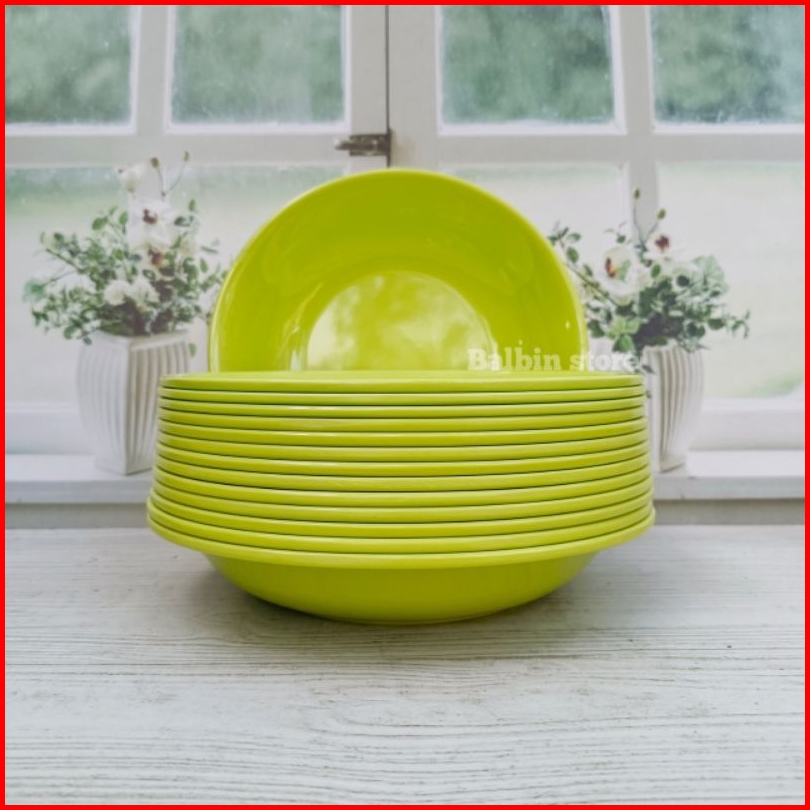 Promo Spesial 12 Pcs Piring Melamin Bulat Cekung Dalam Ukuran 22.5 Cm Warna Hijau Bahan Tebal Asli