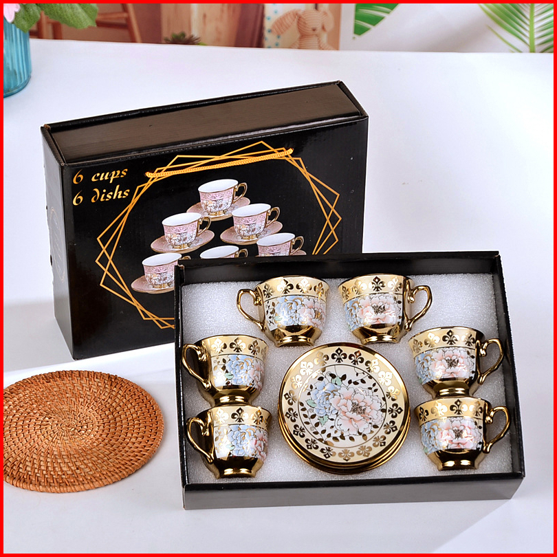 Gaya Eropa Hampers Kado Cangkir Keramik Set 6 In 1 Set Cangkir Dan Piring Keramik