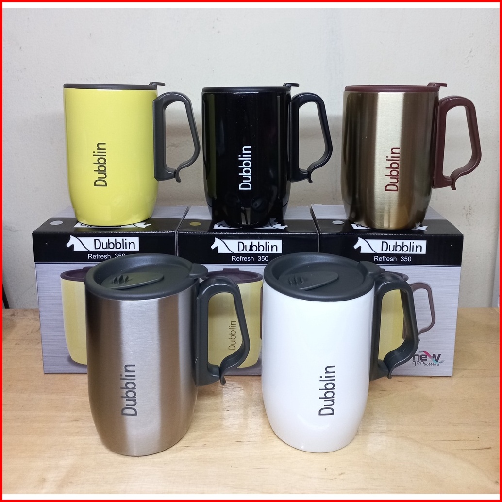 Gelas Mug Tahan Panas Dubblin Refresh 350ml Handle Grip Kopi Teh Stainless Steel