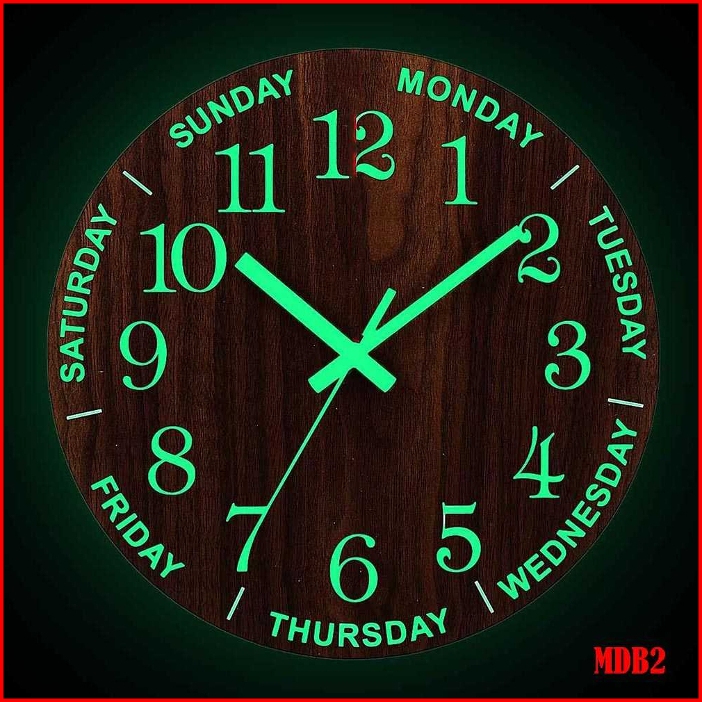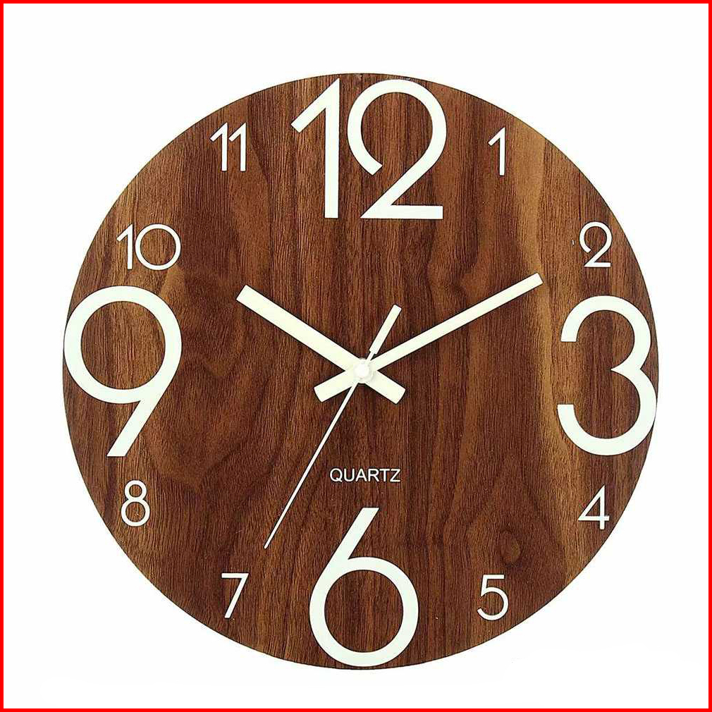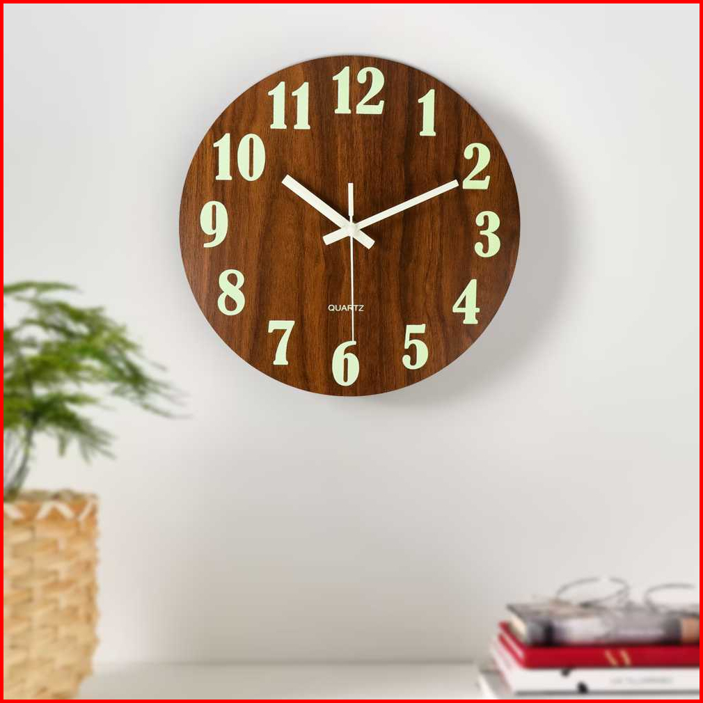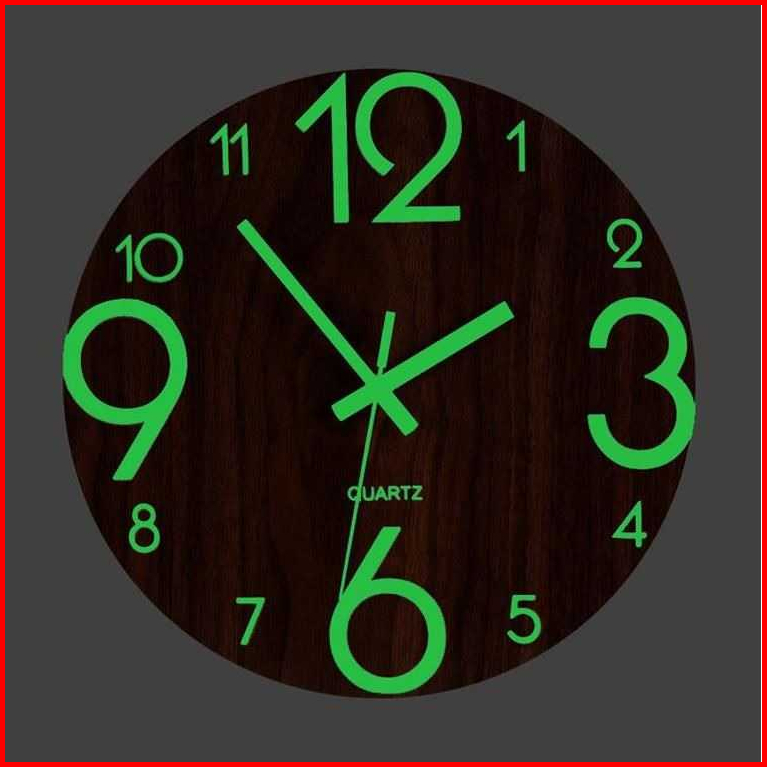 Jam Dinding Tempel Kayu Unik Aesthetic Nyala Dalam Gelap Luminous Glow In The Dark 30cm