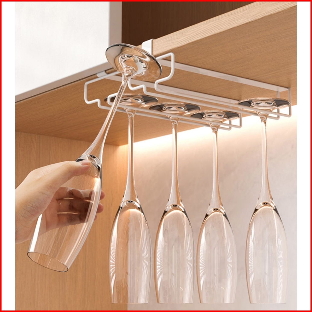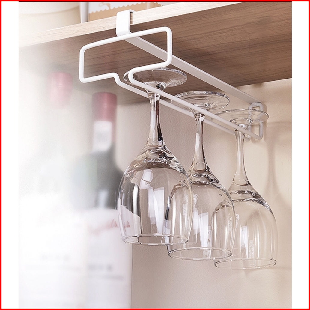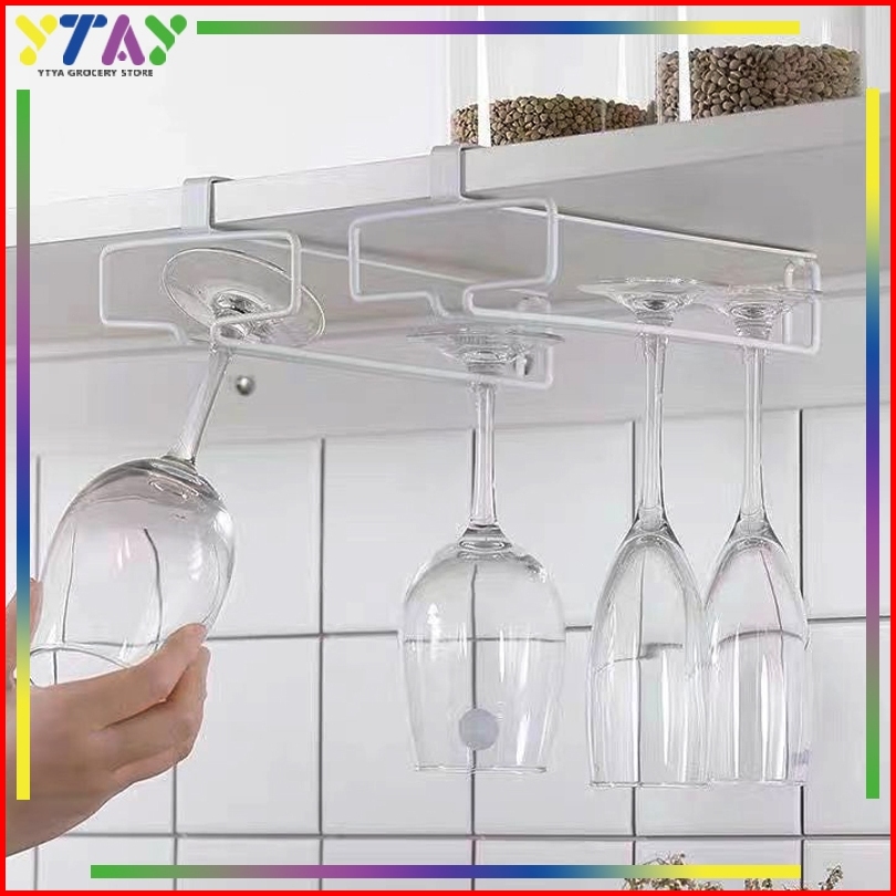 Rak Gantung Gelas Rak Gelas Baris Stainless 1 - 2 Baris Gantungan Gelas Bahan Stainless Untuk Bar Dan Dapur Rak Gelas