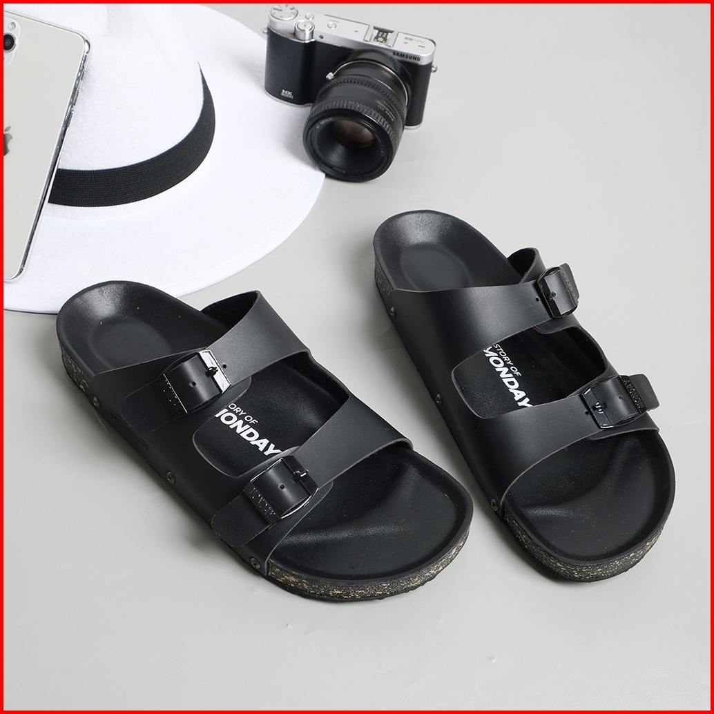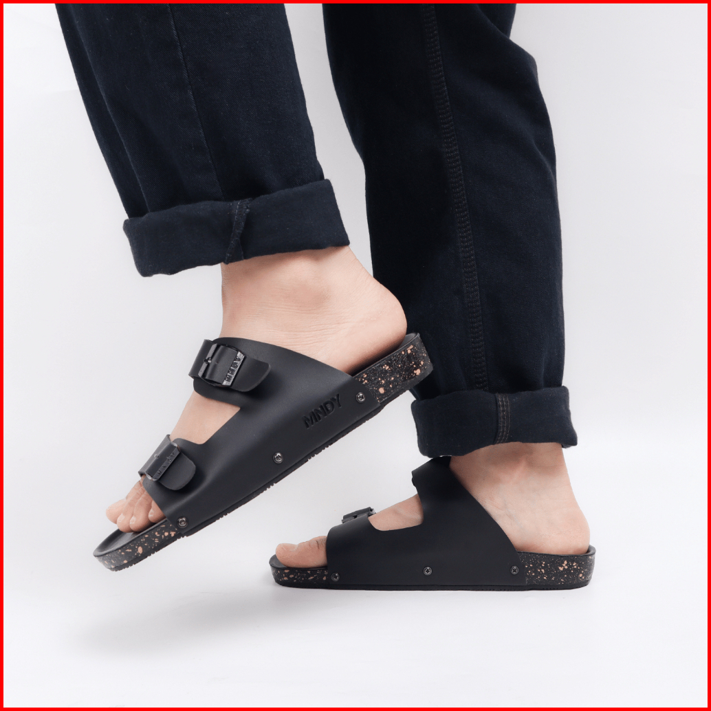 Wajendra X Mndy - Yuno Full Black - Sandal Selop Kulit Premium Anti Slip Ringan Anti Bau