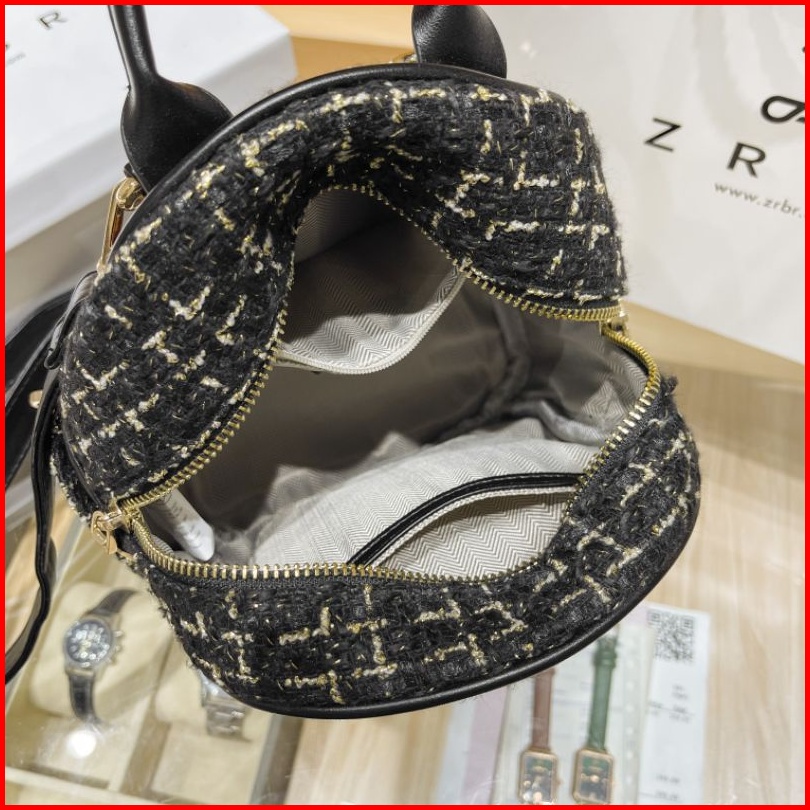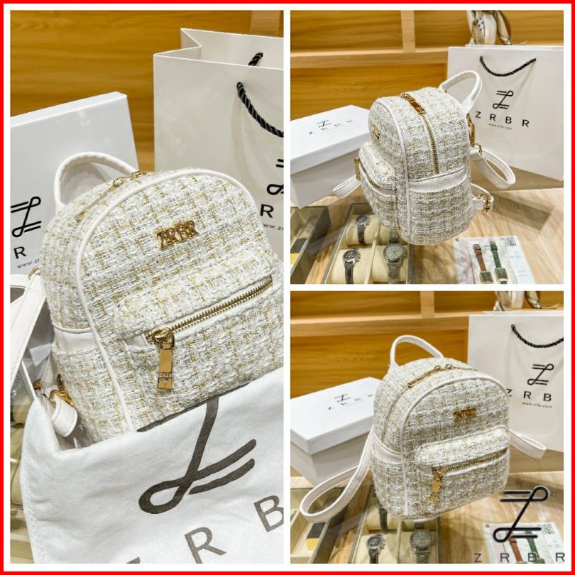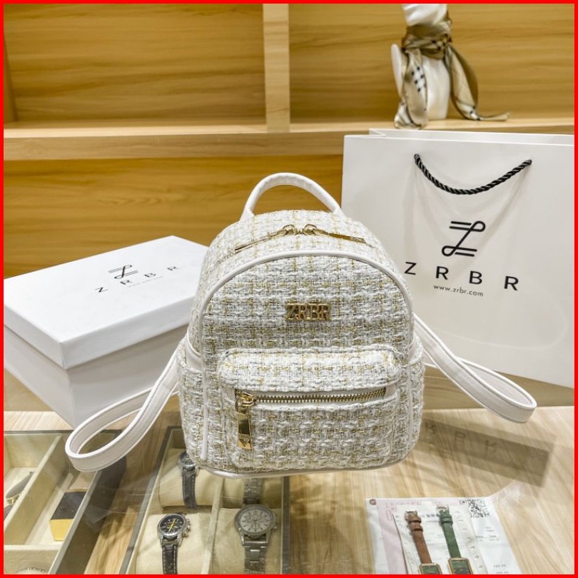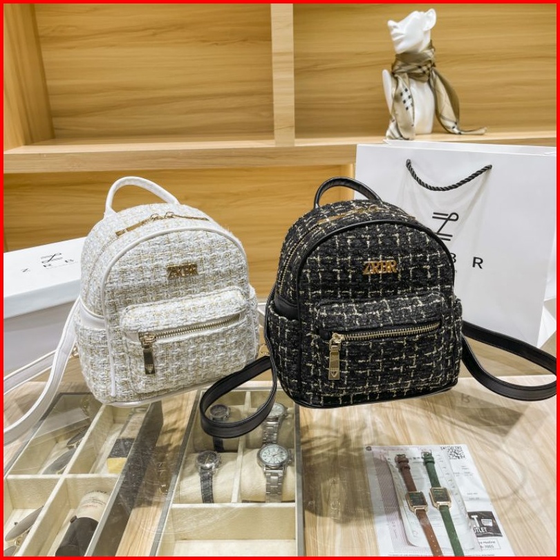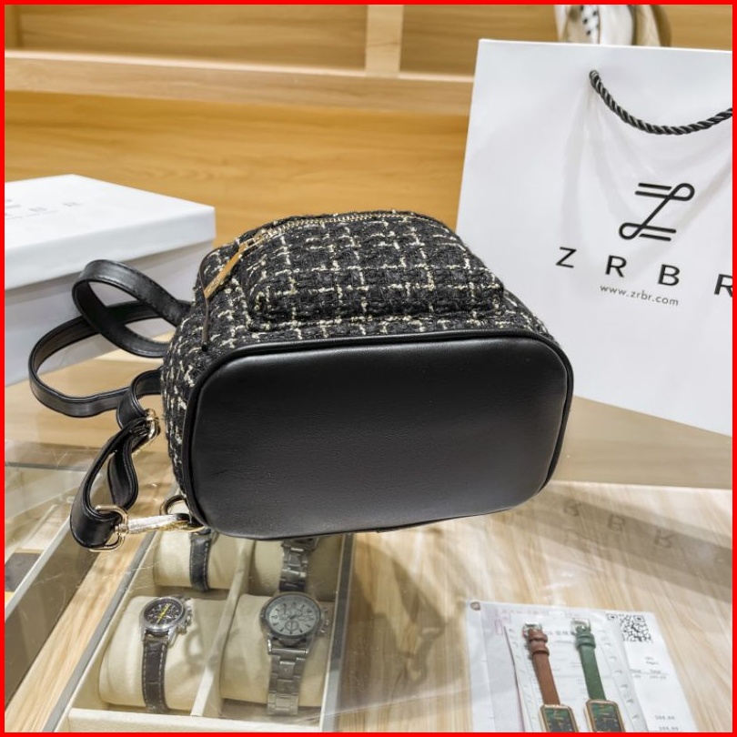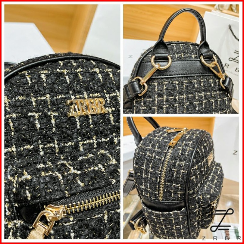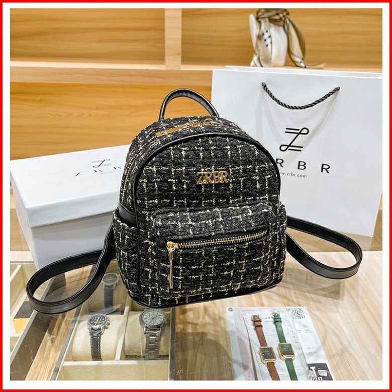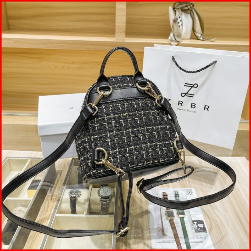 Zrbr - Tas Ransel Wanita Import Backpack Mini Cewek Stylish Korea - Tweed Trapez Backpack 9037