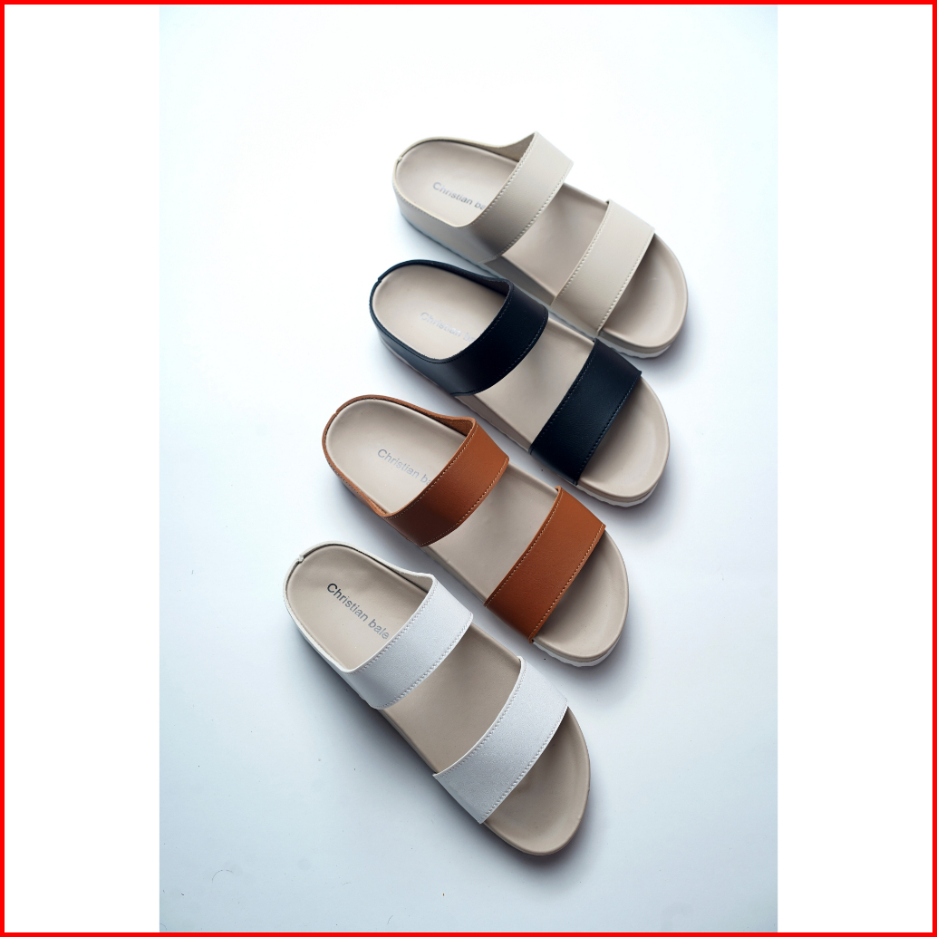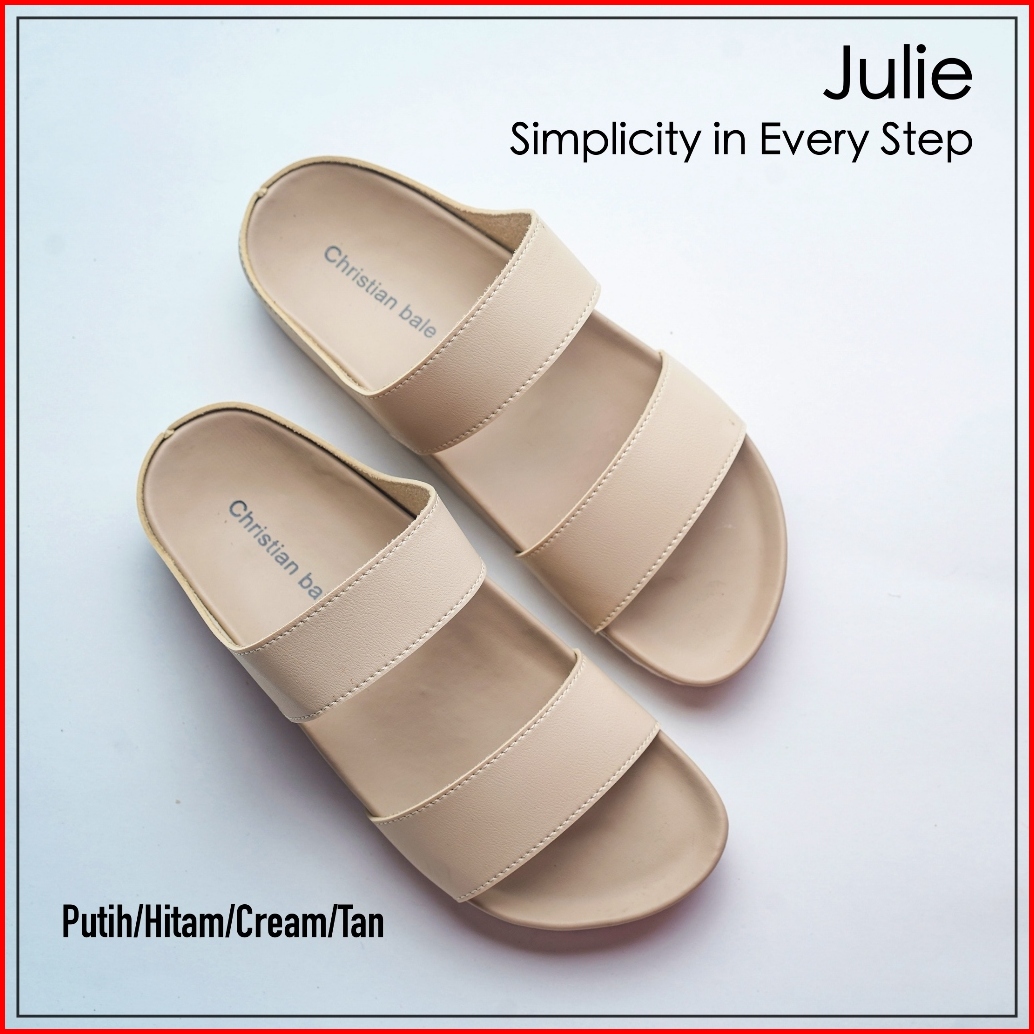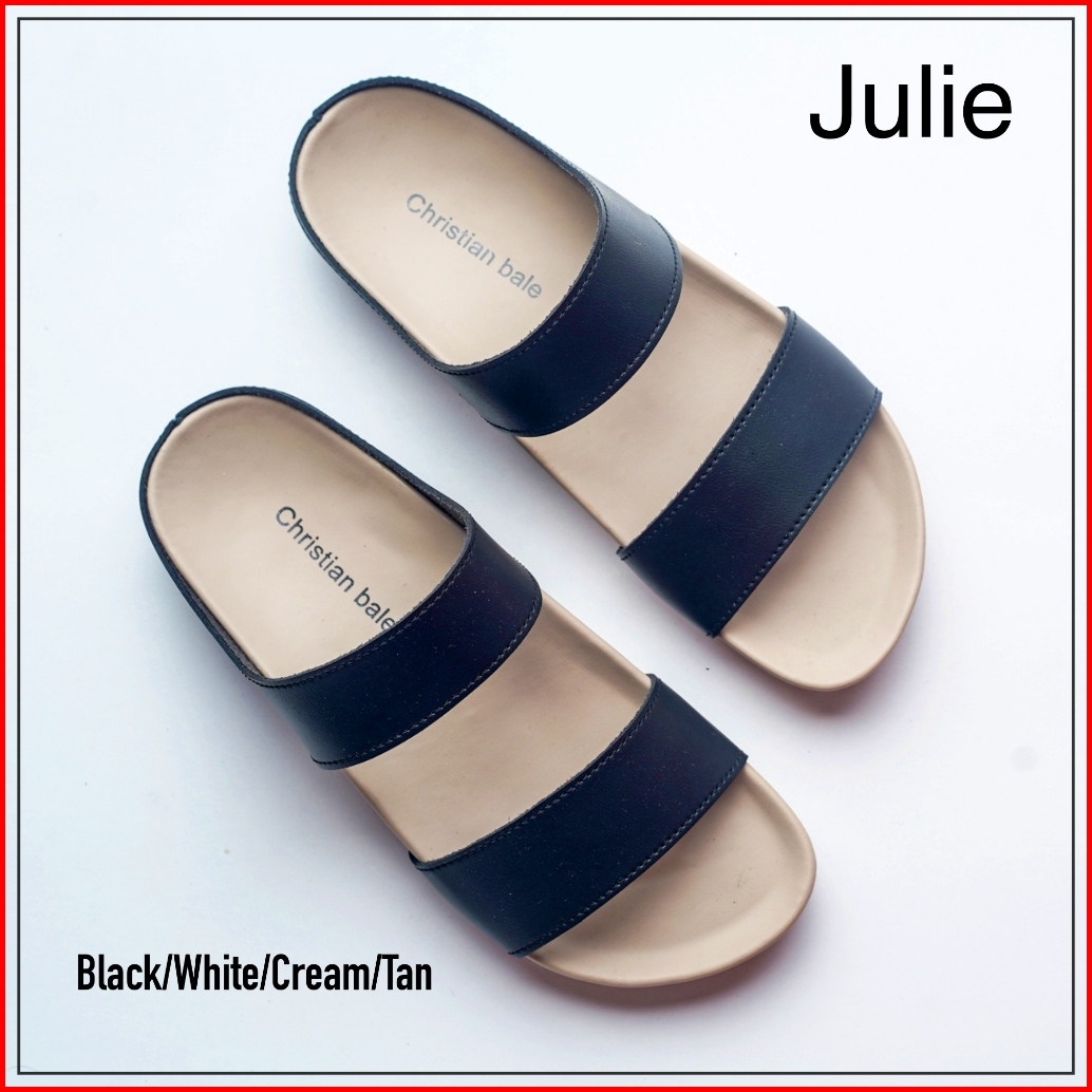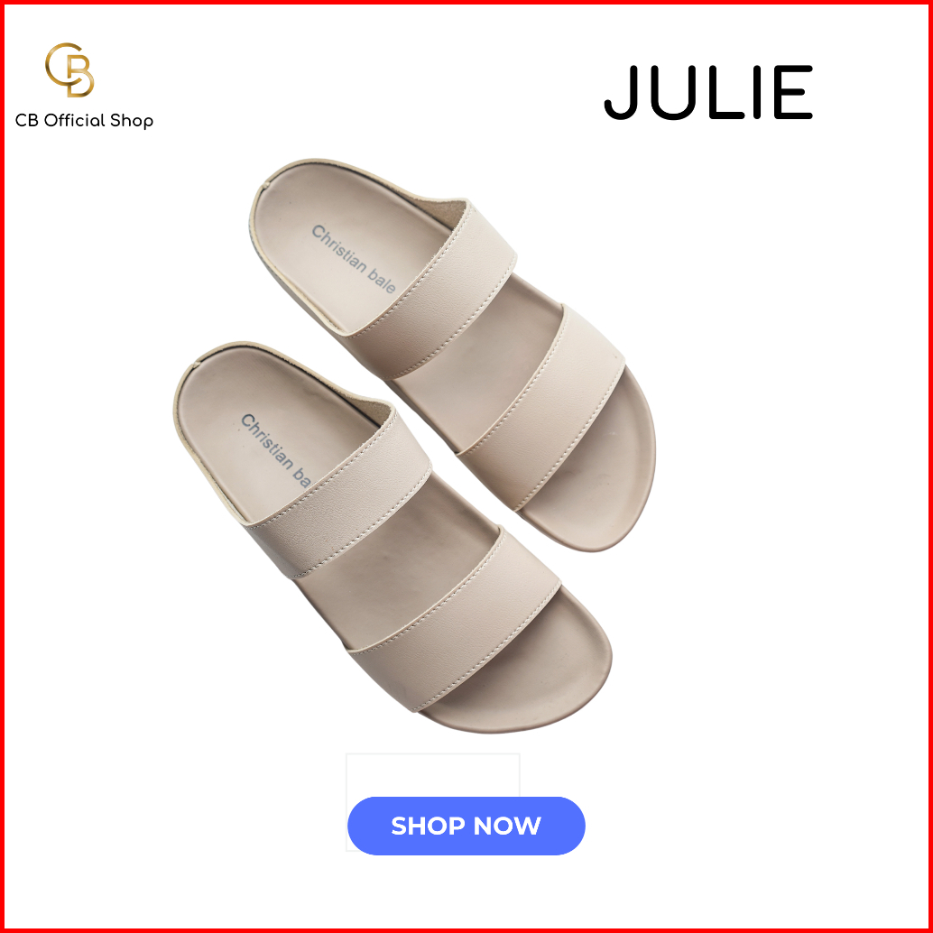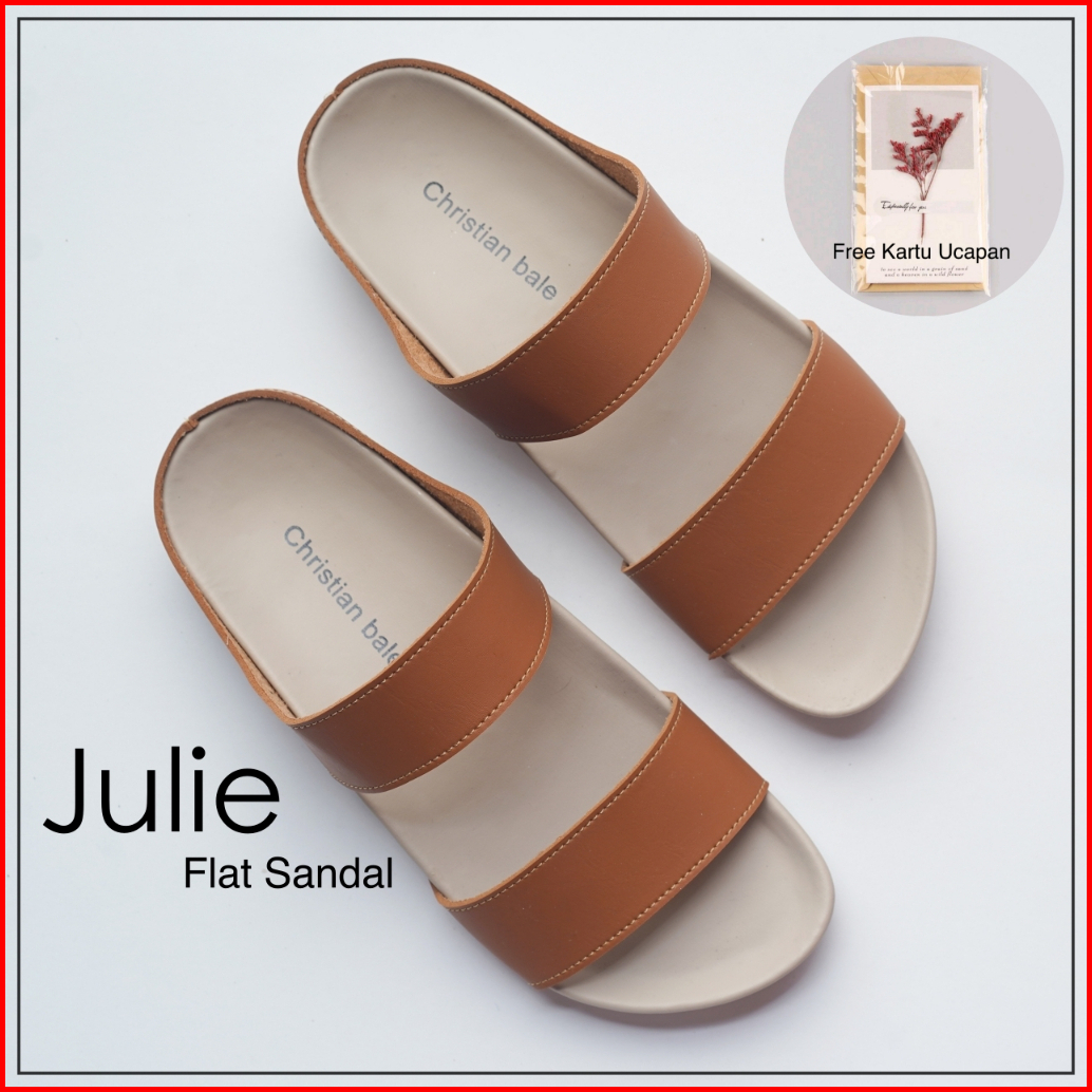 Christian Bale Julie Sandal Wanita Flat Elegan Slop Cewek Kekinian Casual Empuk 3641