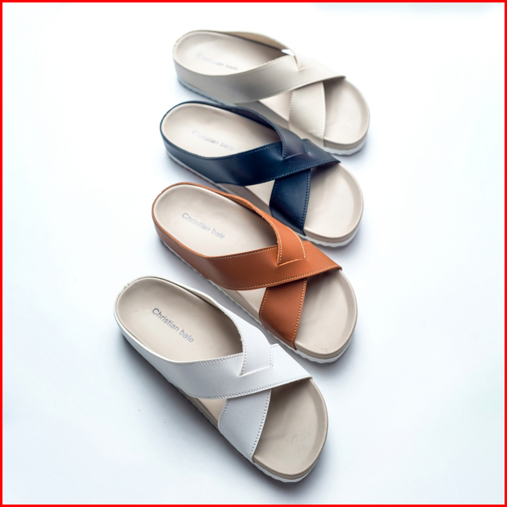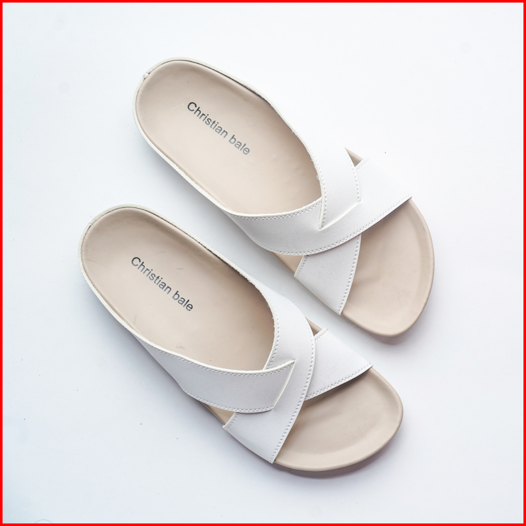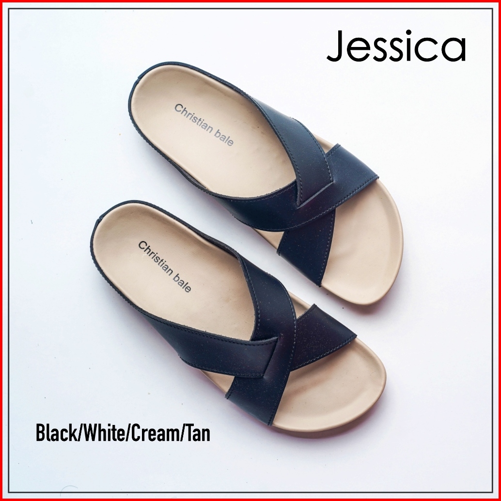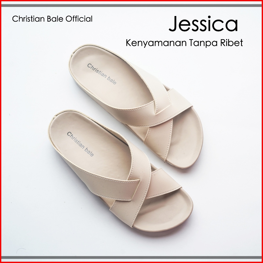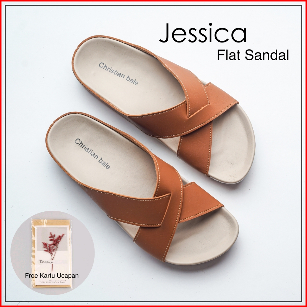 Christian Bale Jessica Sandal Slop Wanita Kekinian Sendal Flat Cewek Tanpa Hak Terbaru