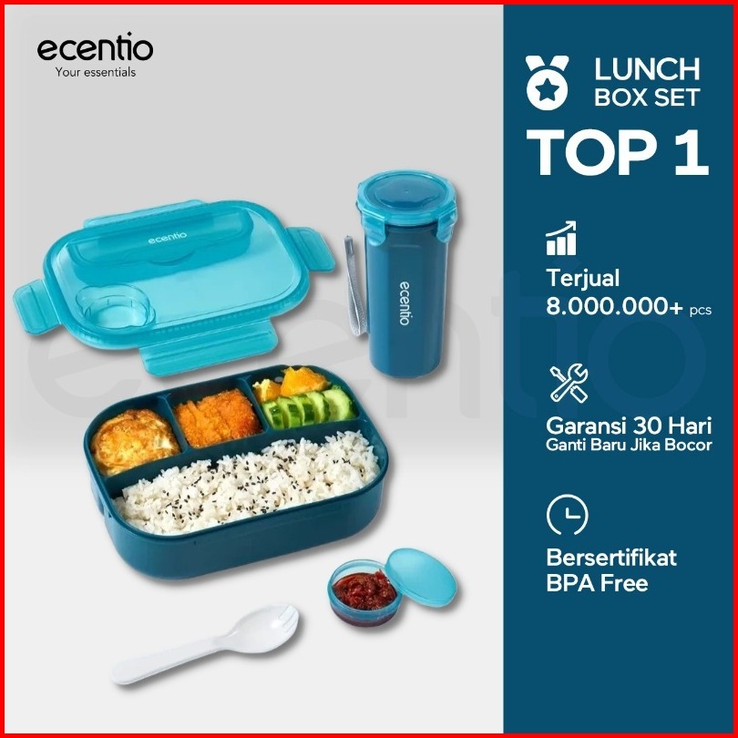 Tempat Makan Anak Sekolahecentio Kotak Bekal Anti Tumpah Kotak Tempat Bekal 1200ml 500ml Free Sendok Kotak Saus Bpa Free