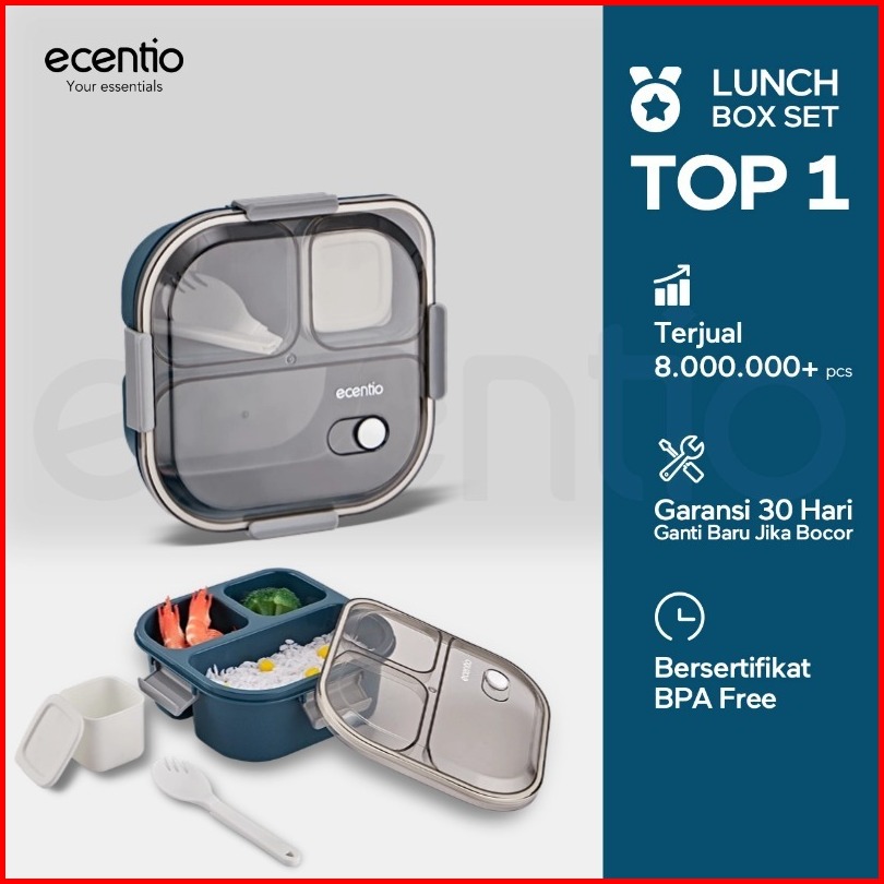 Ecentio Kotak Bekal Anti Tumpah Tumpah 3 Grid 1100ml Kotak Makan Wadah Bekal Anti Tumpah Kotak Sup 100ml Free Sendok