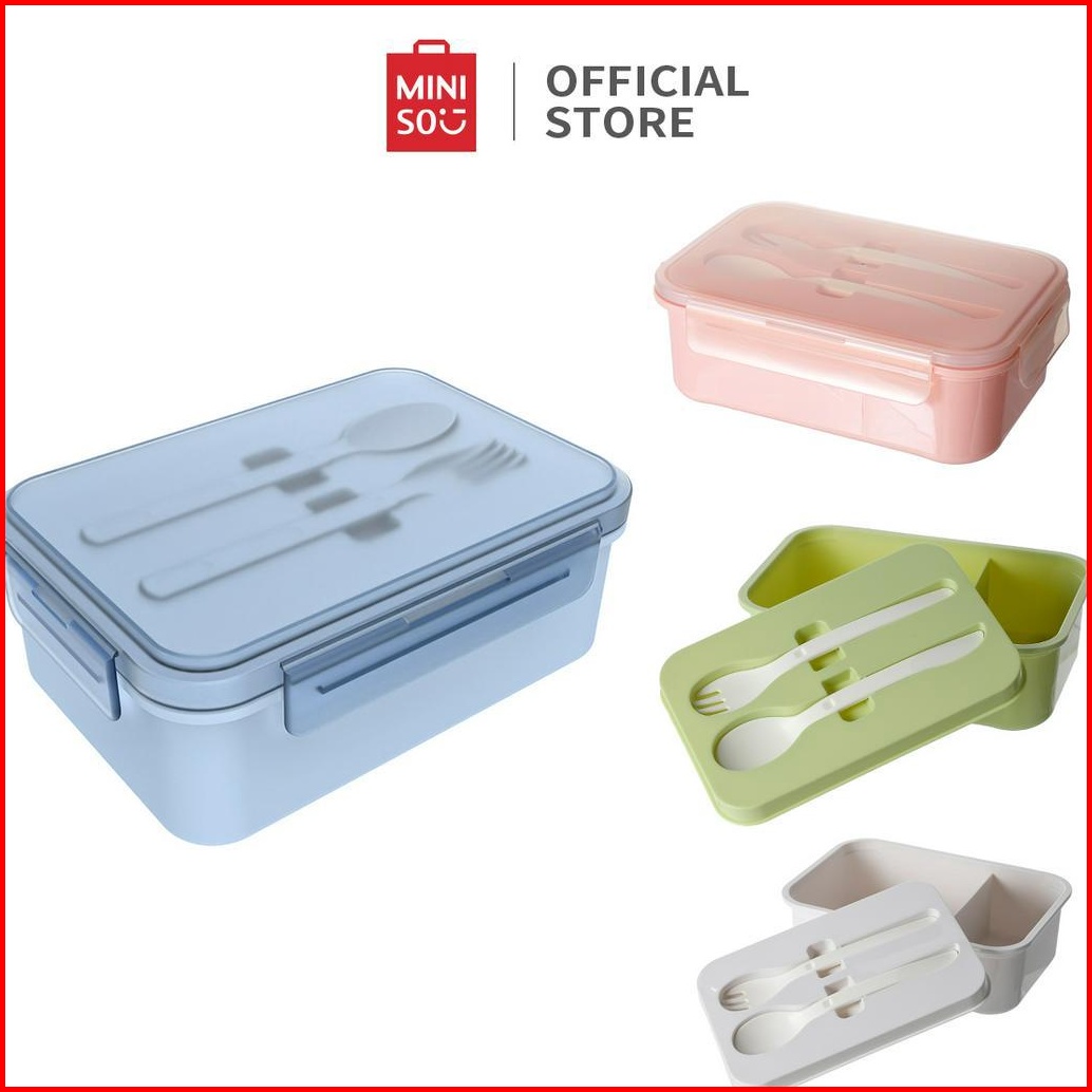 Miniso Lunch Box Set Kotak Makan 1200ml Kotak Bekal Anti Tumpah Free Sendok Dan Garpu