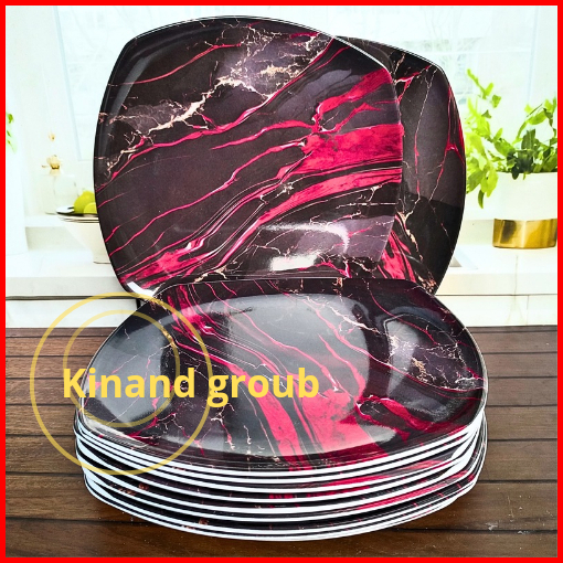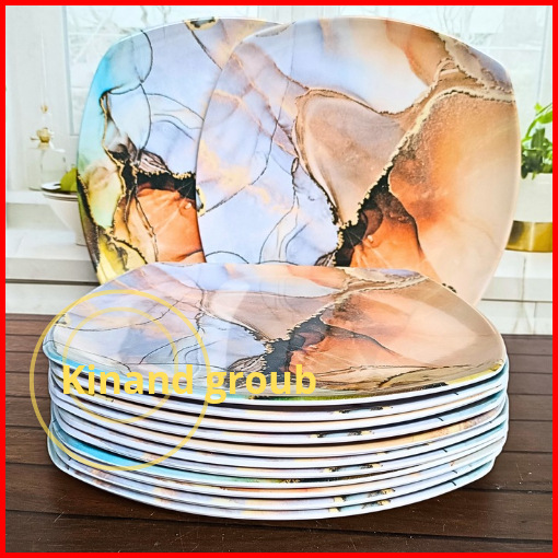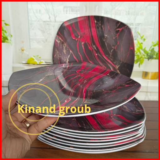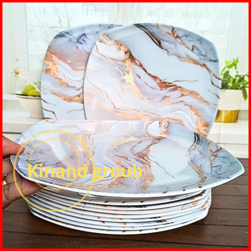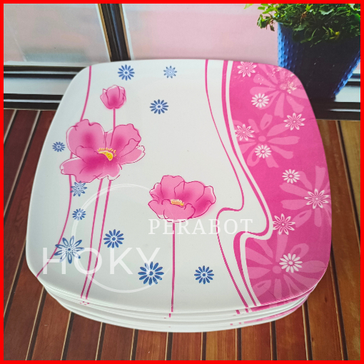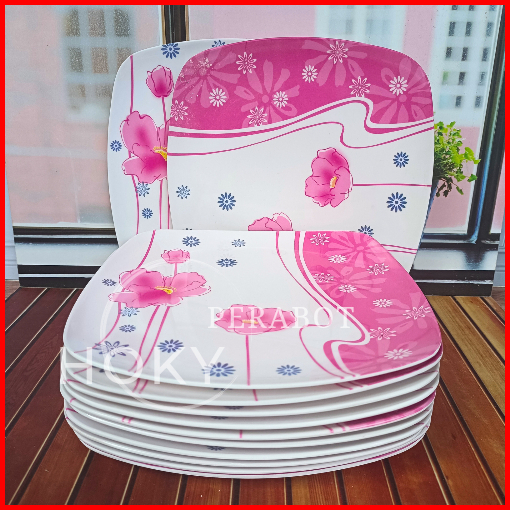 6 Pcs Piring Kotak Melamiin Motif Mewah 23 Cm Melamin Saji Terlaris