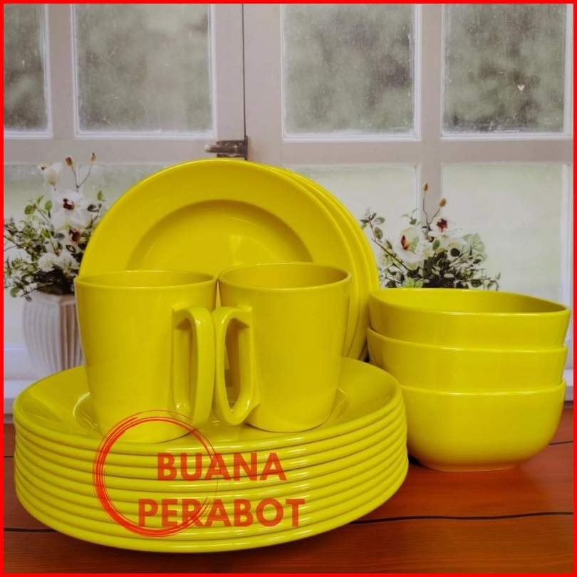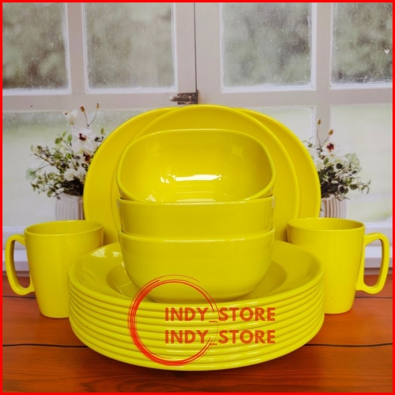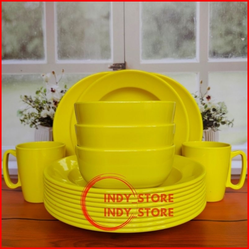 12 Pcs Piring Makan Mangku Dan Gelas Melamin Tebal Tahan Lama