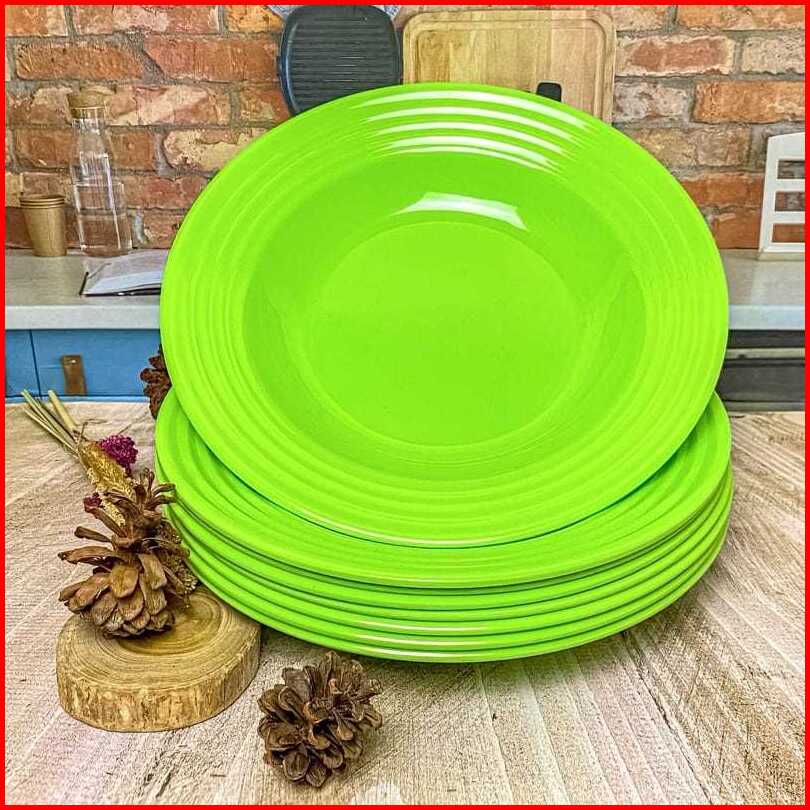 12pcs Piring Bulat Hijau Ulir 23cm 9inc Melamine Original Food Grade Sni Tebal Kuat Tahan Panas
