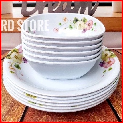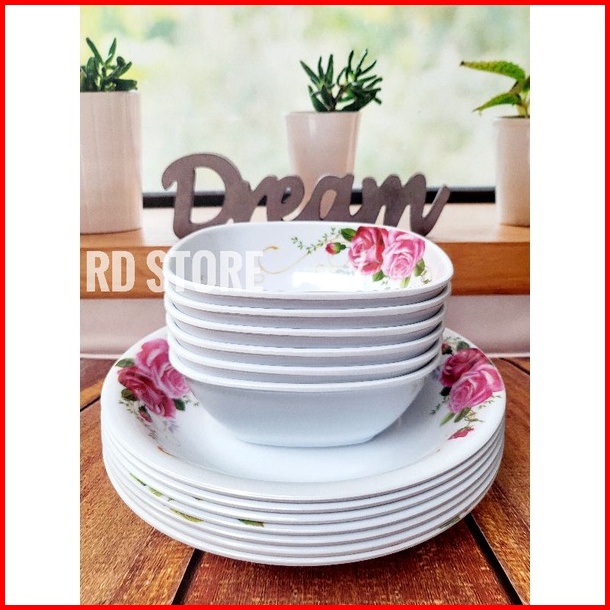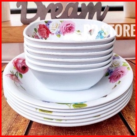 Promo 12.pcs Set 6.piring 6.mangkok Melamine Motif Rose