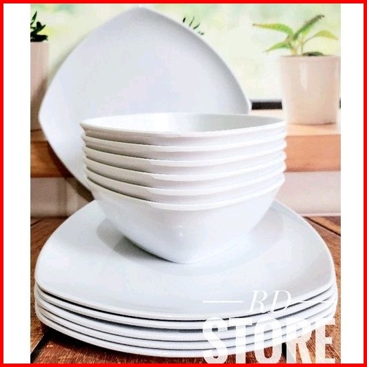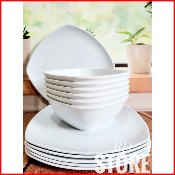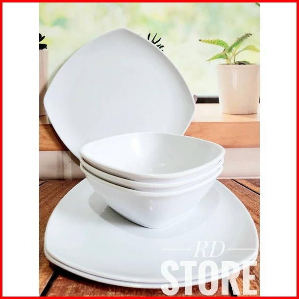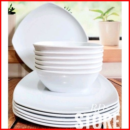 Promo 12.pcs Isi 6.piring Mangkok Melamine Polos