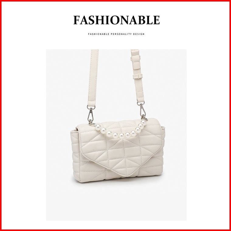 Zrbr - Tas Selempang Wanita Tas Tangan Rantai Mutiara Desain Minimalis Modern Trendy Elegan 9002