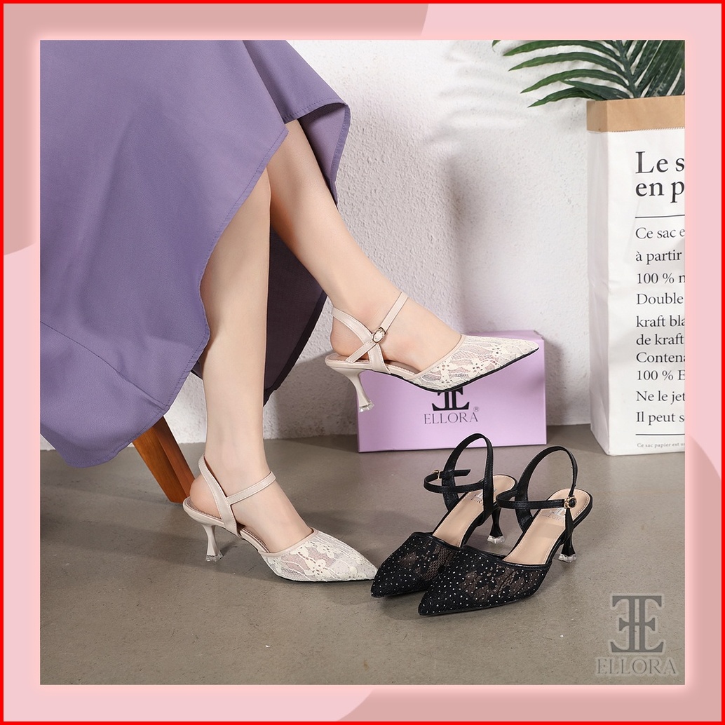 Ellora El-8288 Sepatu Heels Pesta Wanita Ankle Strap Import 6cm